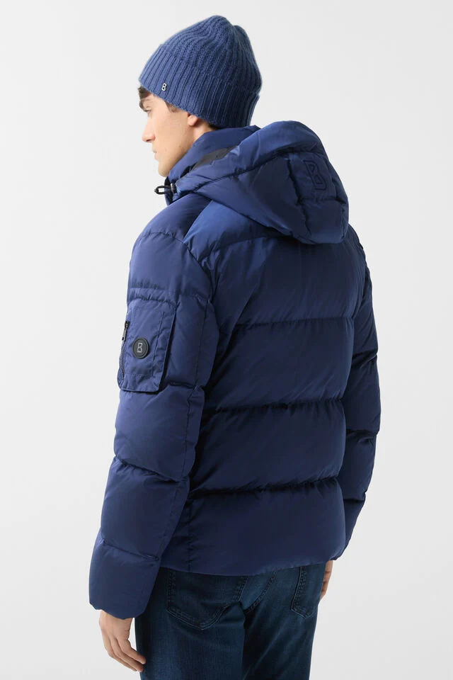 Ръкавите с еластични маншети гарантират удобно прилягане, а закопчаването с подложен двупосочен цип, завършващо с висулка с лого, подчертава луксозния характер