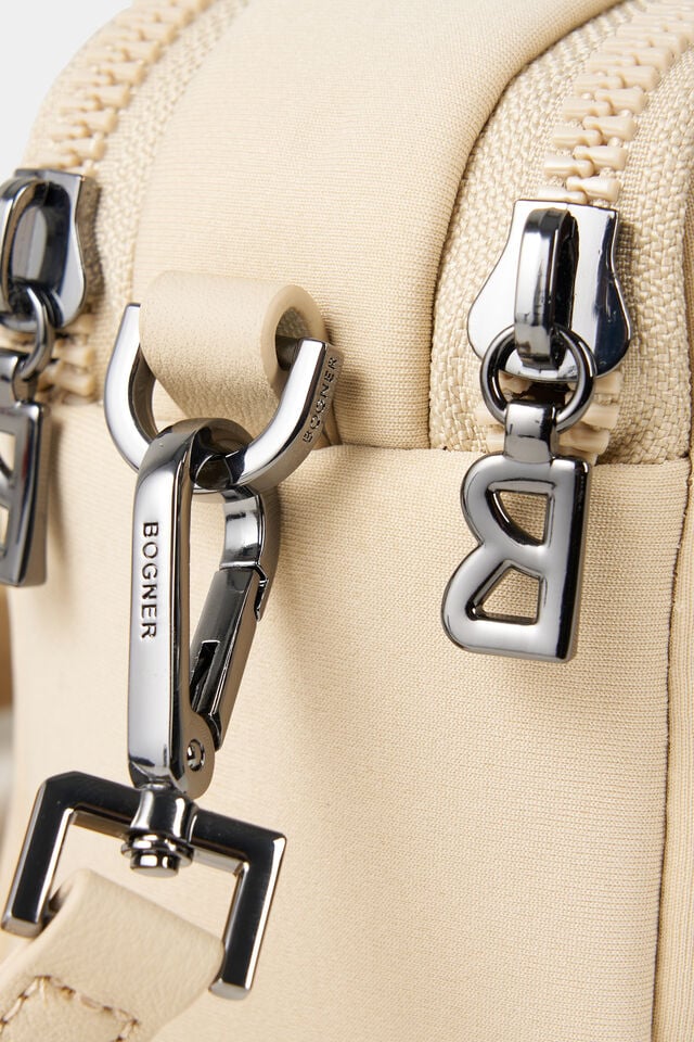Регулируемата и сваляща се текстилна презрамка с дължина 63 см предлага комфорт при носене през рамо или диагонално, докато изчистеният силует без дръжки придава съвременна визия