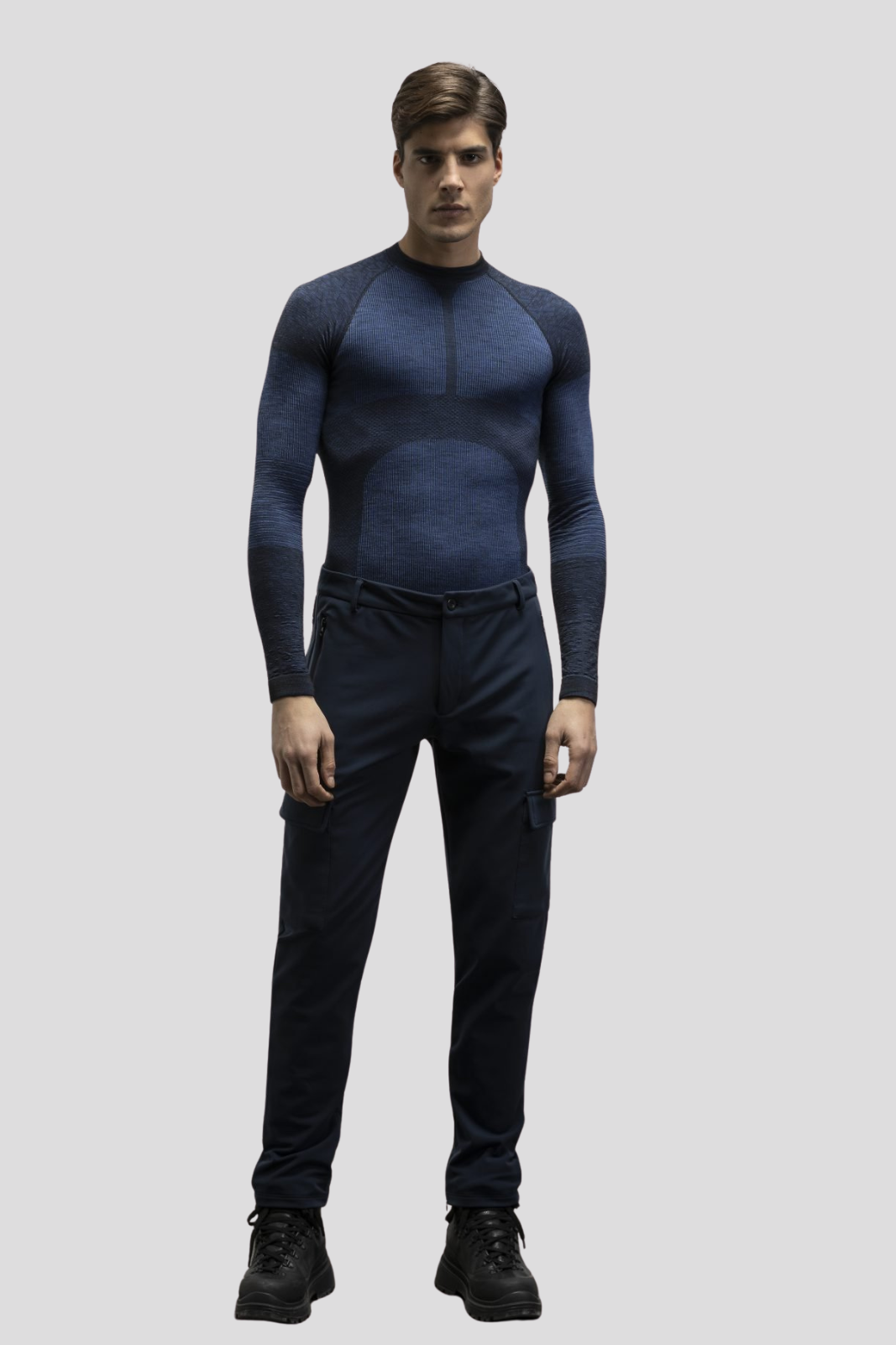 Мъжка термоблуза в прав силует, обло деколте и дълъг ръкав, изработен от техническа вълнена плетка