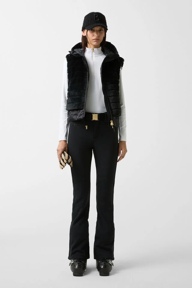 Прикрепената лента за кръста и еластичният колан BOGNER с метализирана B-образна катарама подчертават елегантността на силуета, допълнени от подплатена лумбална защита с фино избродиран шев на лого от вътрешната страна на талията