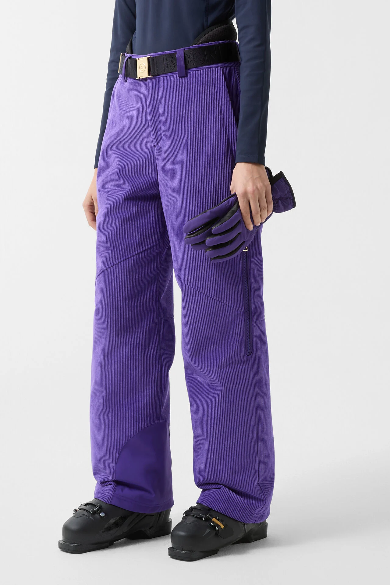 Ски панталони от кадифе в прав силует и средна талия, отличаващи се със своите широки крачоли и фин баланс между комфорт и функционалност