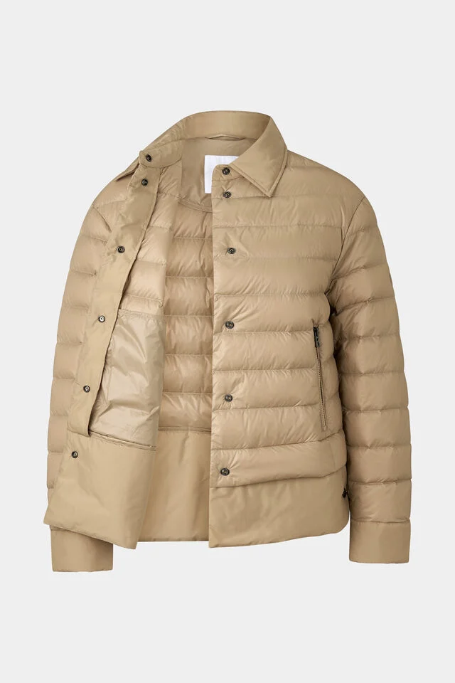 Затопляща подплата от патешки пух, подгъв с вложка и закопчаване на колана с копчета, като дължината на гърба е 65 см, придават изтънчен завършек и луксозен комфорт на модела