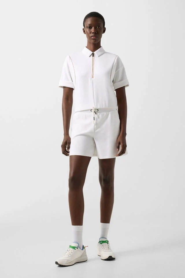 Класическите плисета, оформящите дартс на задната част на колана подчертават изтънчения силует