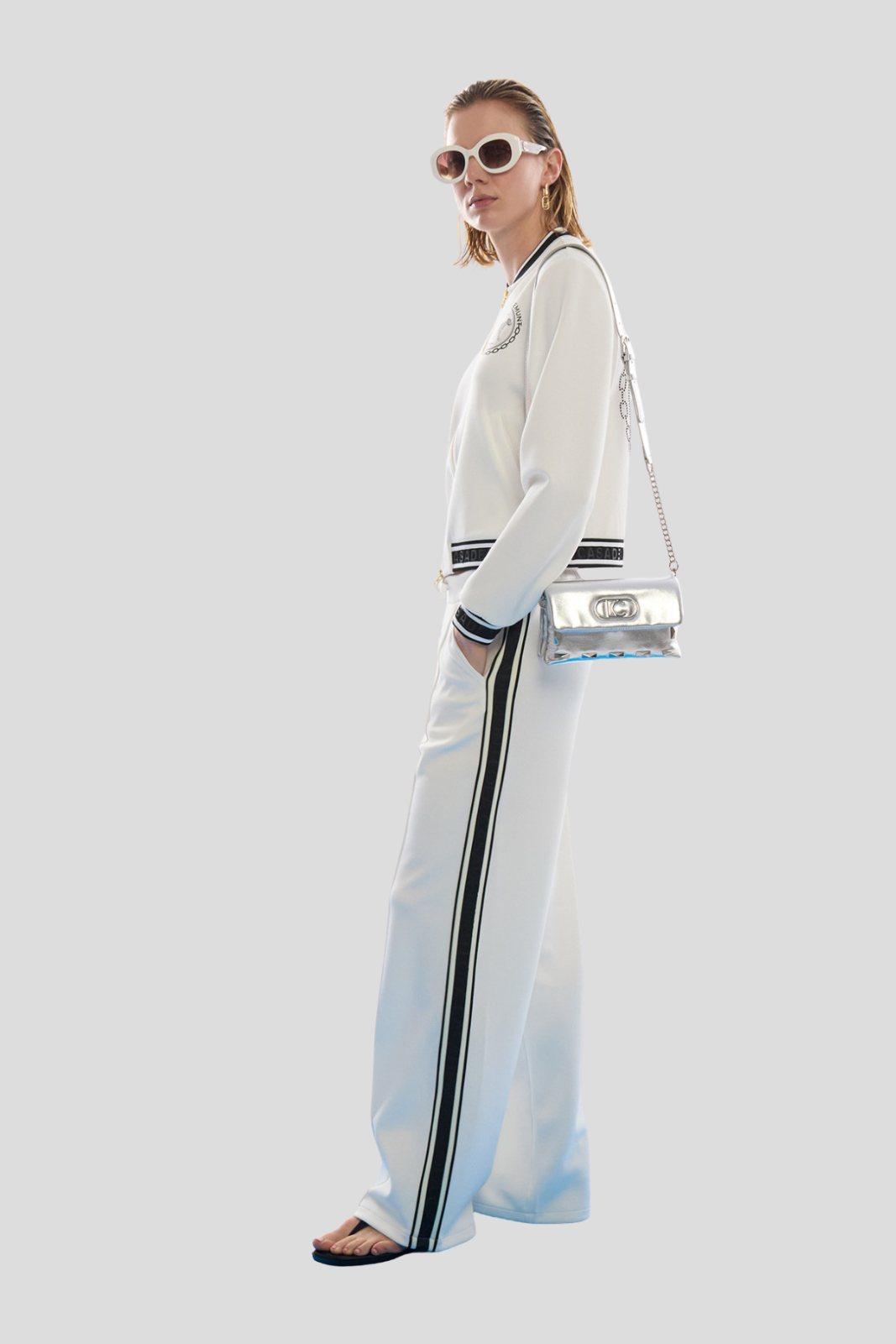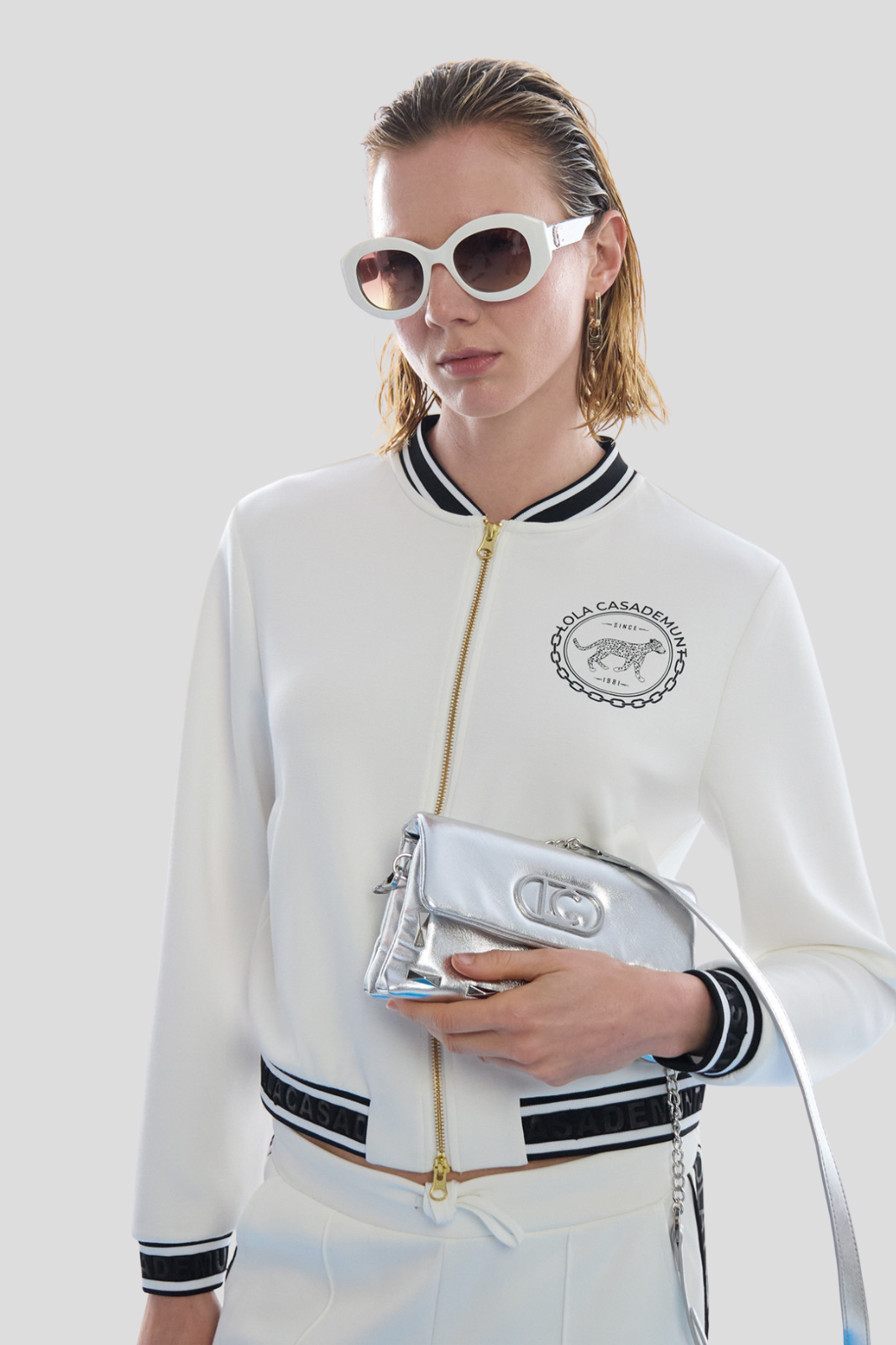 Моделът разполага с предно закопчаване с цип и класическо кръгло деколте, както и еластични маншети и долна част за комфортно прилягане