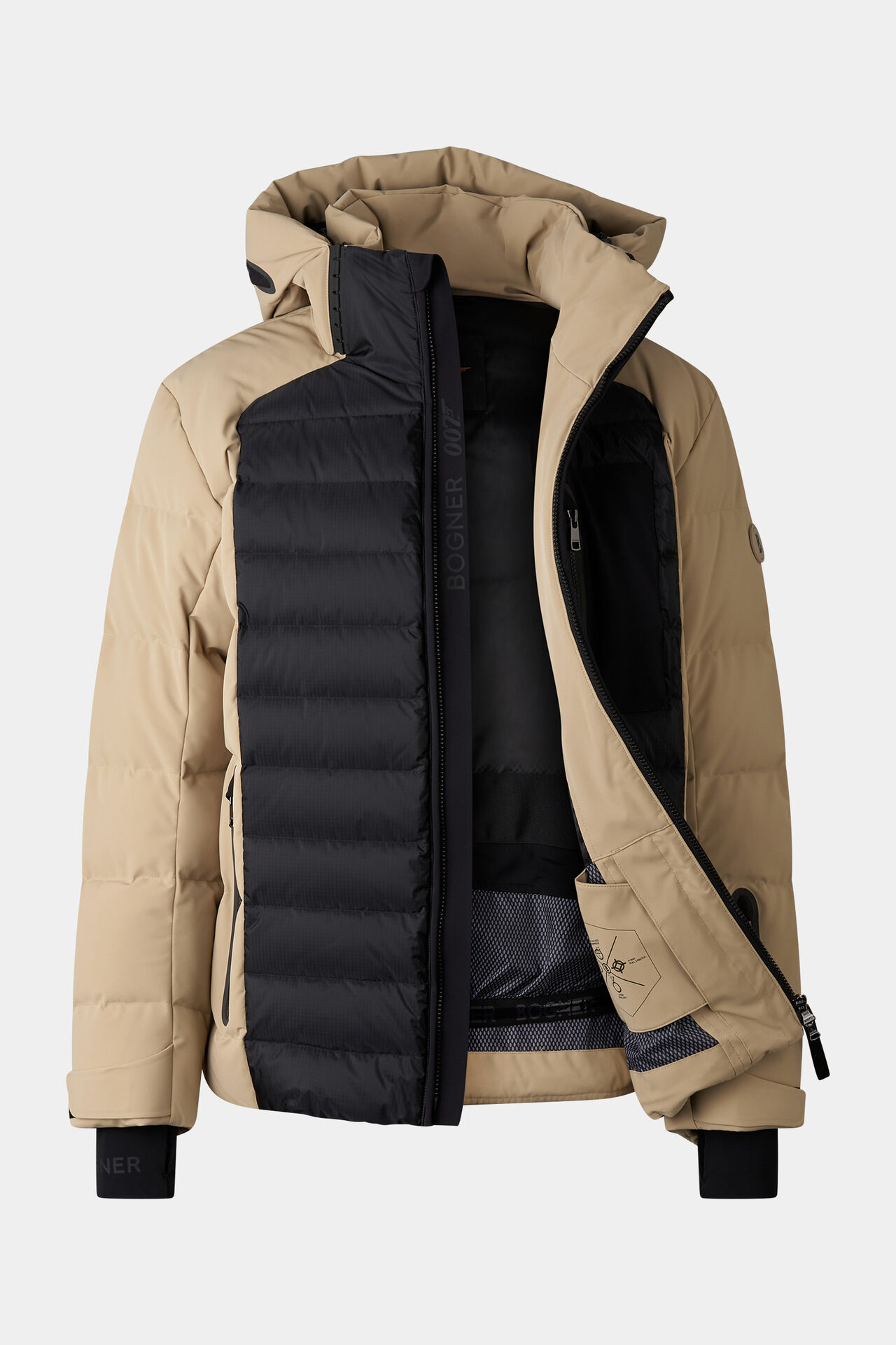 Изискано въплъщение на съвременния лукс и технологична прецизност, това яке от лимитираната колекция BOGNER x 007 съчетава емблематичен дизайн с функционалност, достойна за екстремните условия на планината