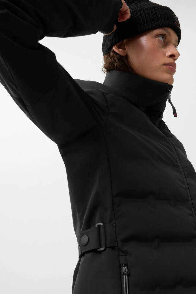 Подложеният двупосочен цип с B-образен плъзгач, джобът за ски карта, скрит в шева на ръкава, двата странични джоба с цип и вътрешният джоб предлагат функционално съхранение, като текстилната нашивка FIRE+ICE на ръкава подчертава дизайнерската идентичност