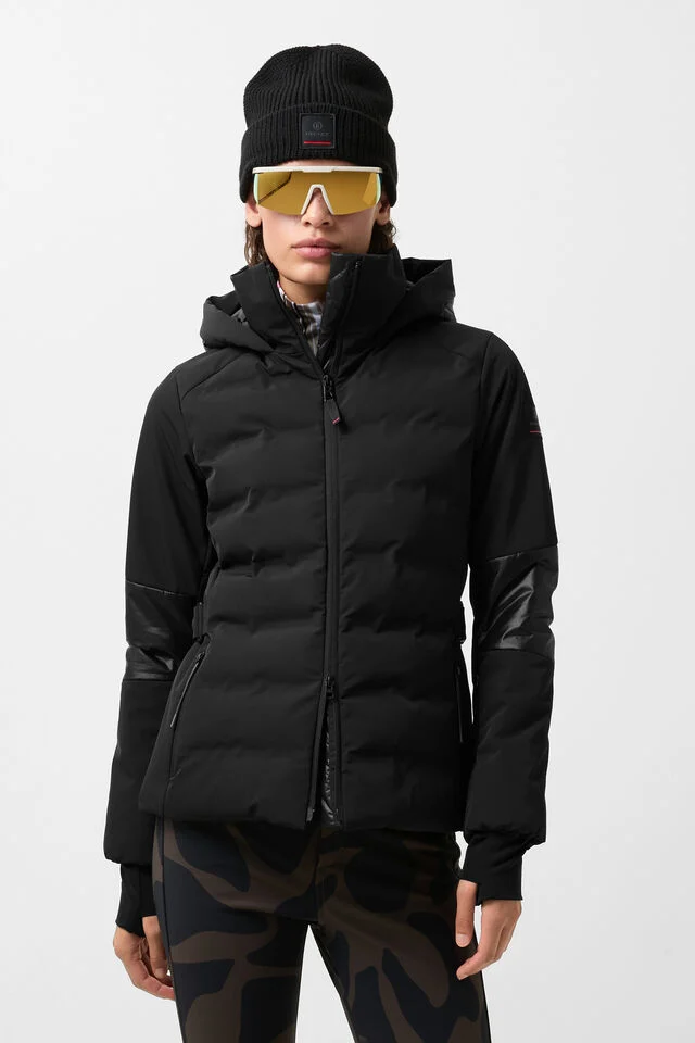 Ски яке в класически силует в дизайнерска комбинация от капитонирани и гладки секции, съчетаващо стил, функционалност и топлина