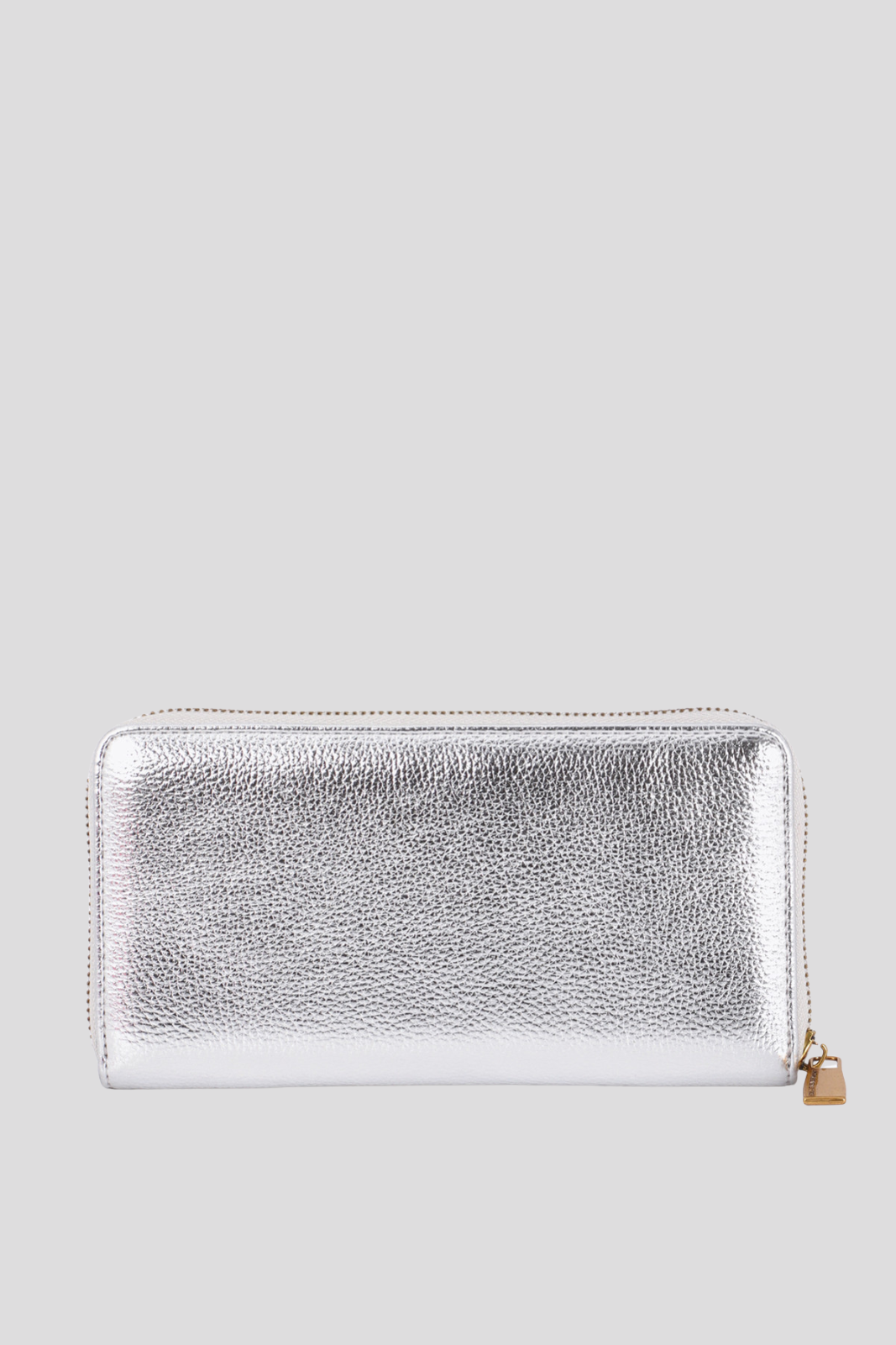 Портмоне с метален сребрист ефект и закопчаване с цип