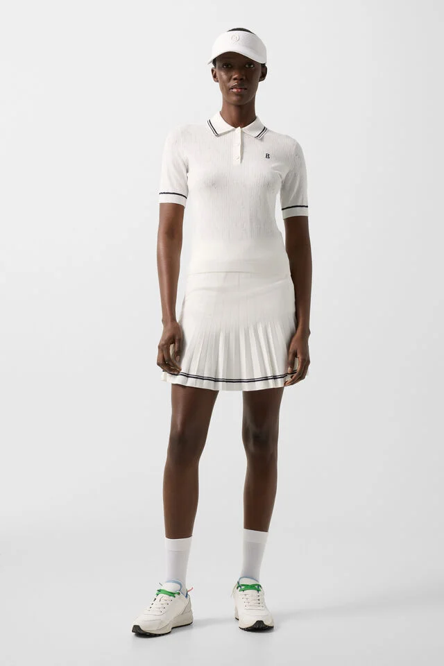 Дамска поло тениска с класически силует и поло яка от еластична рипсена плетка, която осигурява комфорт и изтънченост