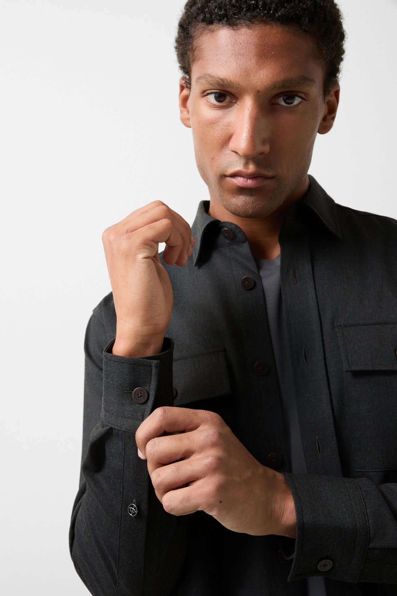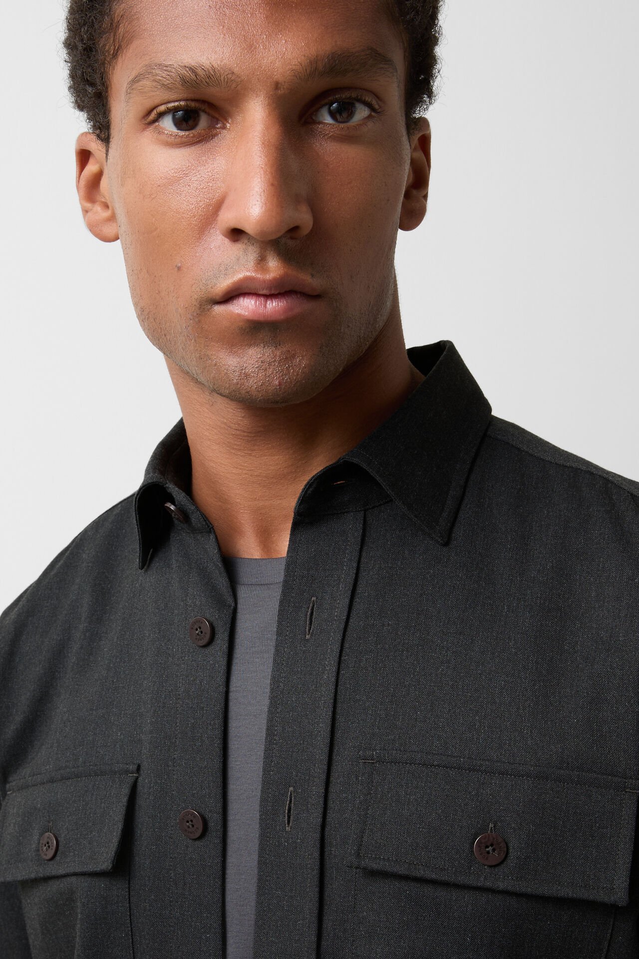 Моделът е с класическо закопчаване с копчета, два нашивни джоба с капаци и копчета на височината на гърдите, дискретно знаме на BOGNER отстрани и страничен цепнат подгъв за елегантно завършване
