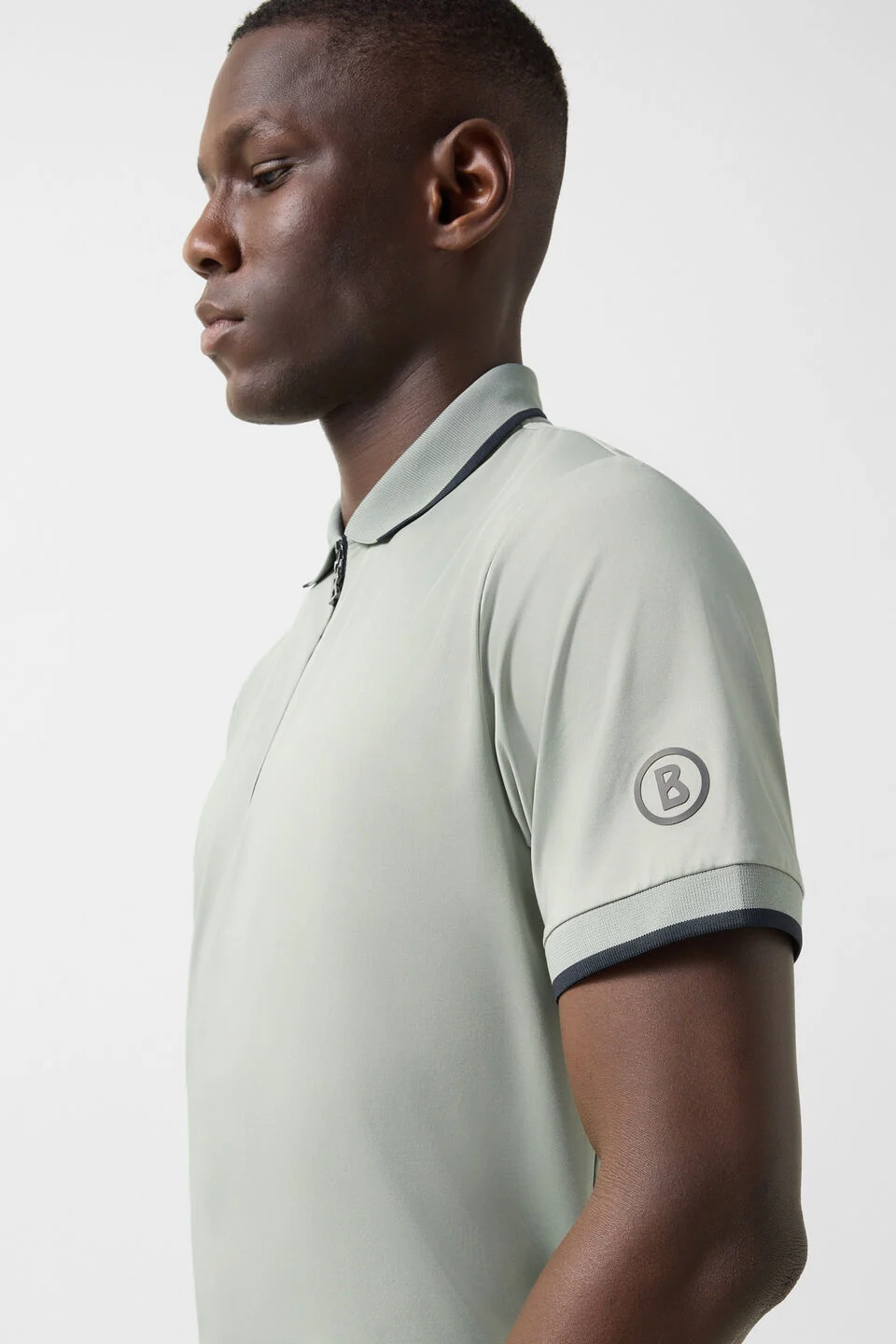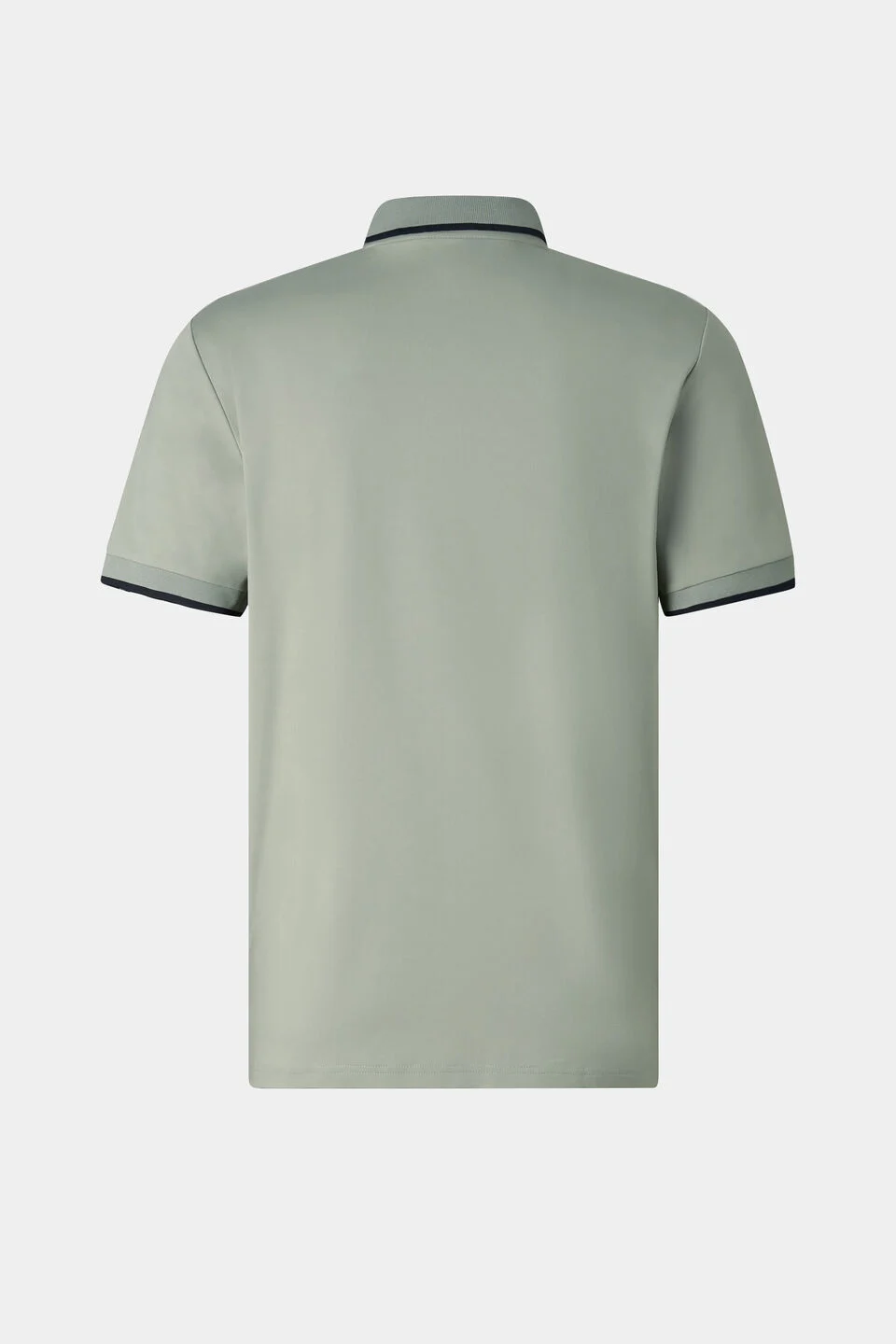 Поло тениска в класически силует и елегантно излъчване, допълнена от фино оребрена поло яка и къси ръкави