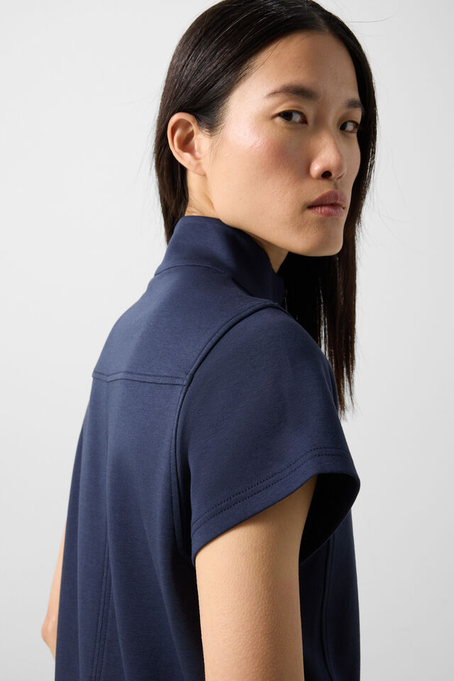 Моделът е с тройерска яка и широки къси ръкави