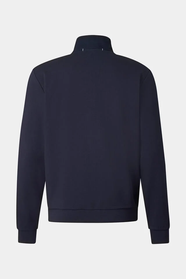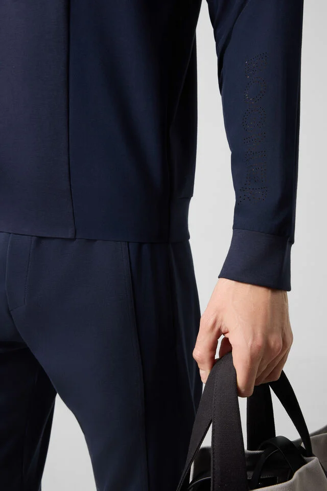 Разполага с дълги ръкави с вградени маншети, светлоотразителна лента на ципа и B-печат на нивото на гърдите