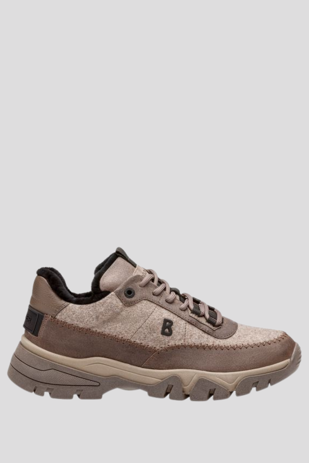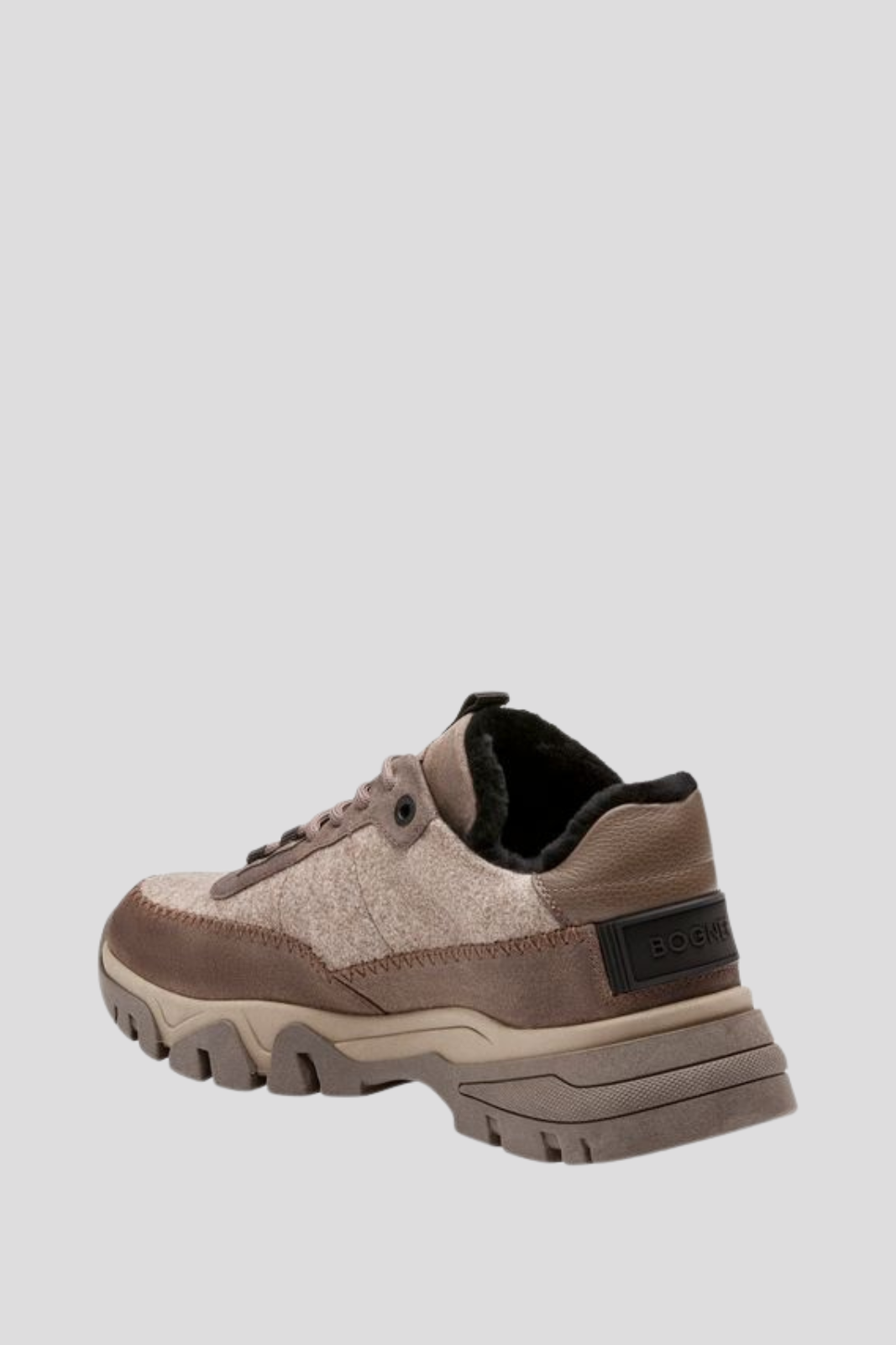 Мъжки кецове изработени от премиум восъчен велур и фин филц с класическо закопчаване с връзки и заоблена капачка на пръстите отличаващи се с детайли с нашивка BOGNER панделка от гросгрен върху езика релефни отвори за връзки с лого и надпис B-signé и апликация отстрани дизайнът е допълнен от подсилена пета с гумена каишка тонални декоративни шевове както и изключително мек хастар и подвижна стелка от агнешка кожа за максимален комфорт
