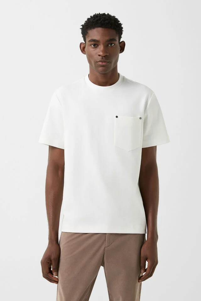 Тениска в класически силует, кръгло деколте и къси ръкави с двойно зашити маншети