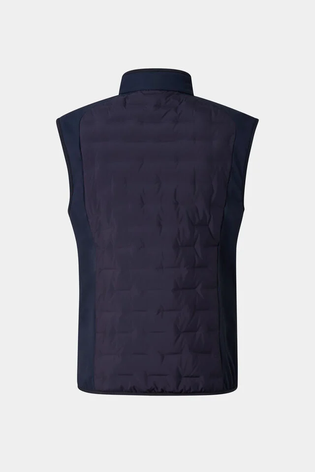 Мъжки елек от висококачествени материи с изящна вълнообразна тъкан и пълнеж от гъши пух отпред и отзад, комбиниран с 4-лентово разтегливо трико за свобода на движението