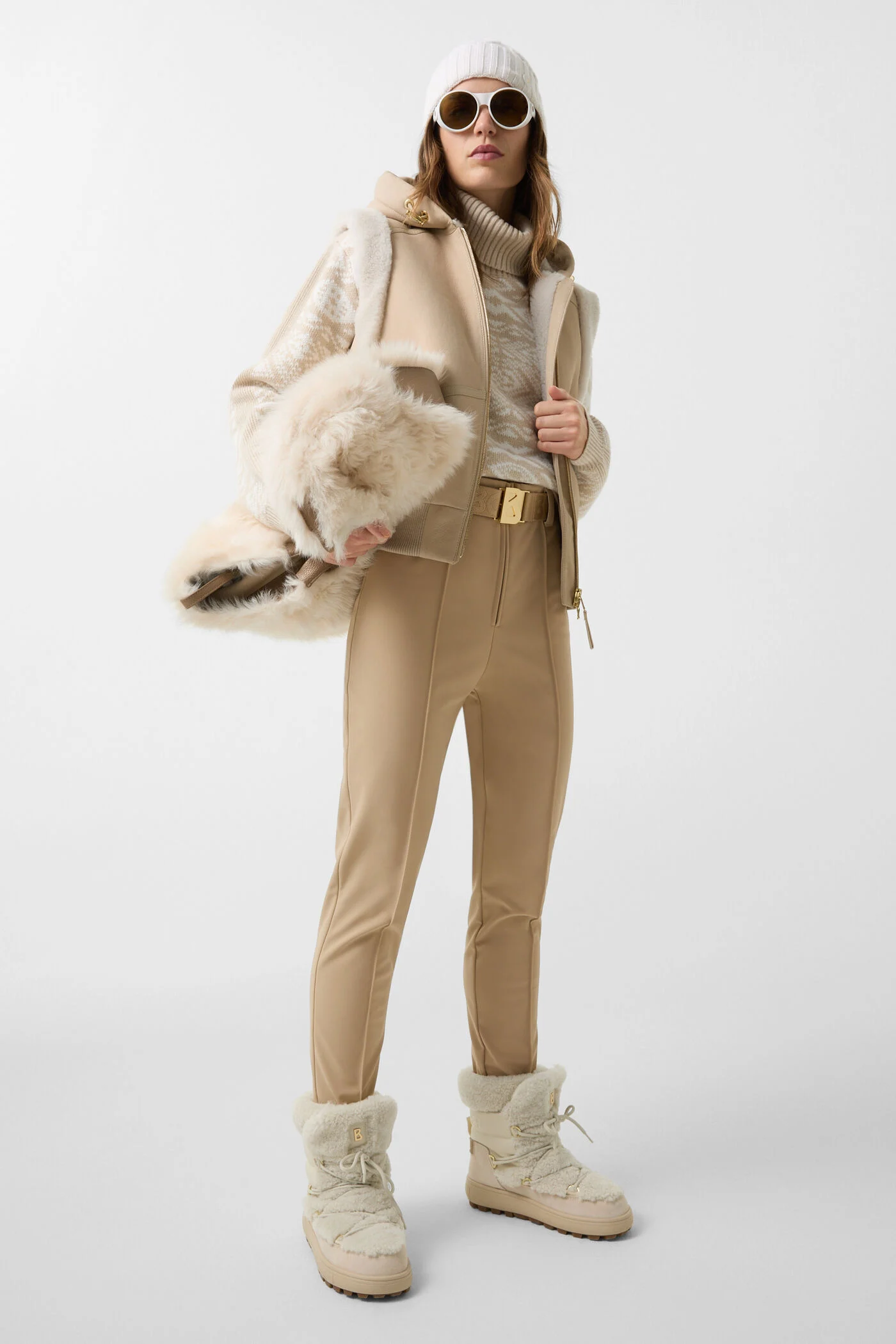 Елегантен панталон Slim Fit средна талия и тесен крак отвори за крачолите с еластични стремена закопчаване със скрит цип и копче вътрешно подсилена талия с еластичен текстилен колан BOGNER и катарама B-clamp класически тръбопроводи B-гумена лепенка на гърба с трайно водоотблъскващо покритие воден стълб 10 000 мм и дишаемост 10 000 г на м² за 24 часа затопляща трислойна обработка осигуряваща комфорт и топлина при активни зимни условия