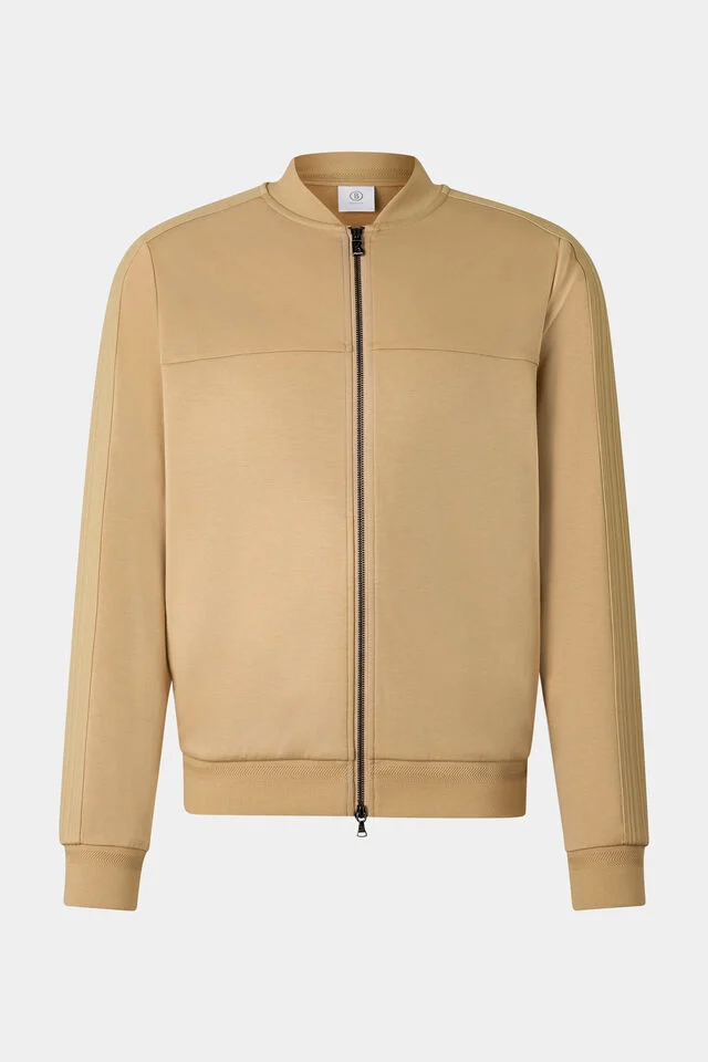 Суитшърт в класически силует и изтънчен контрастен дизайн с еластични участъци в две посоки, фиксирана качулка с регулируеми връзки, двупосочен цип с B-образна висулка, дискретни странични джобове, финален BOGNER акцент върху панделката Grosgrain и B-печат на ръкава, с маншети с вдлъбната секция, прикрепена бленда и подгъв с частично прикрепена лента за безупречен силует и изключителен комфорт