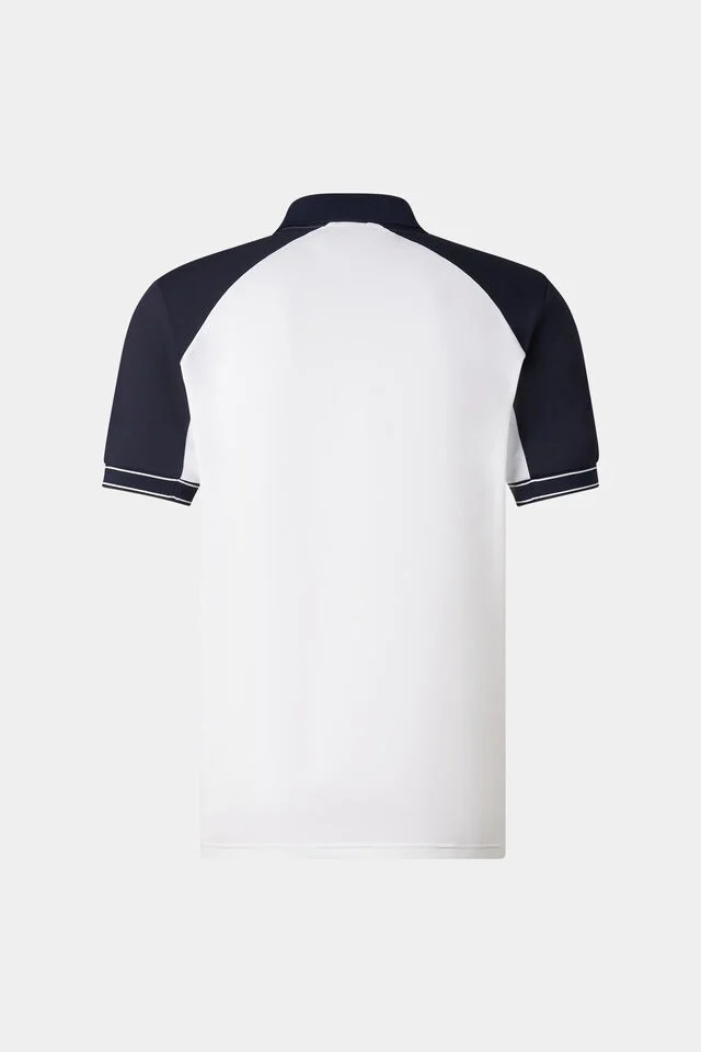 Поло риза в прав силует, с контрастни секции и странични пике вложки, оребрена поло яка, къси ръкави, оребрени маншети, къс B-цип