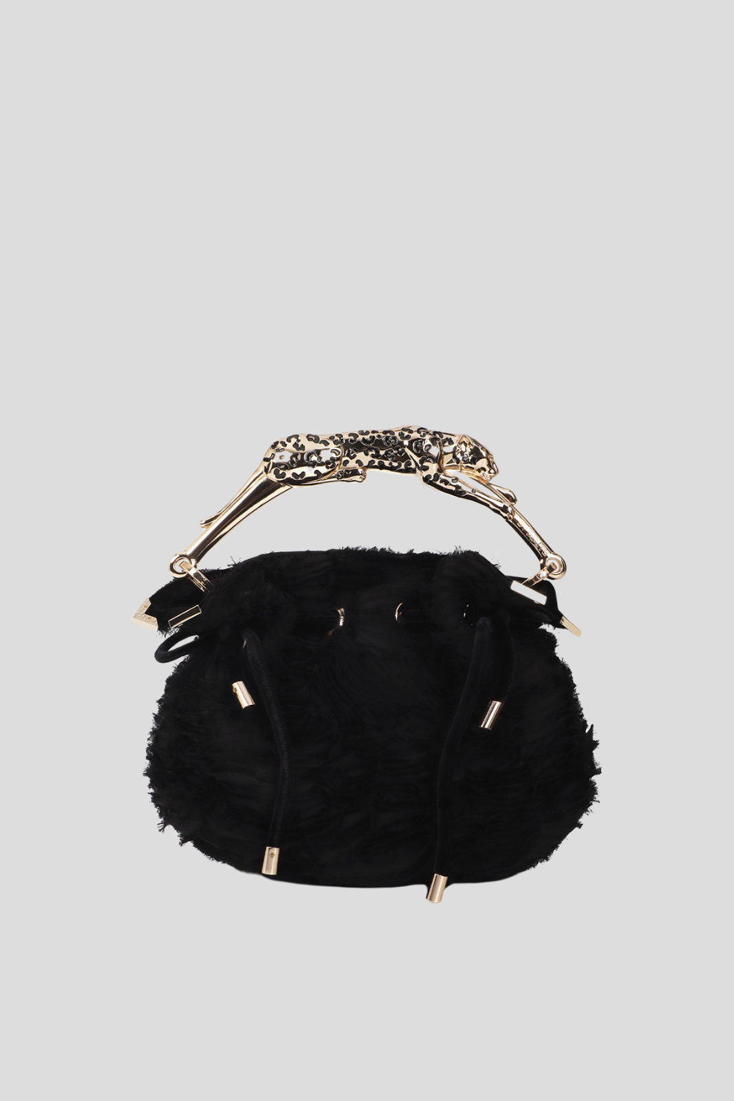 Fantasy Rosette Fabric Bag with Metal Leopard Hand
