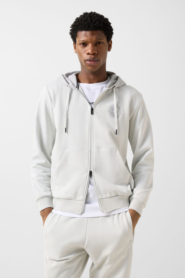 Разделеният джоб тип „кенгуру“ допълва визията с небрежна изисканост и функционален характер