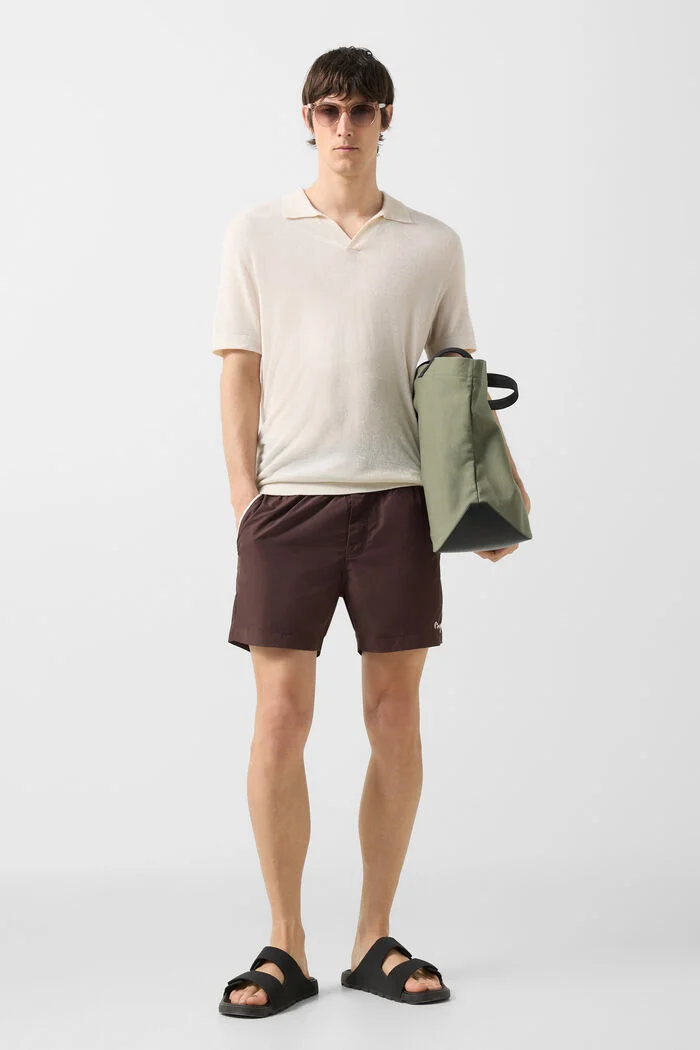 Късите ръкави са завършени с фино оребрени маншети, а подгъвът носи B-лого като изискан бранд детайл