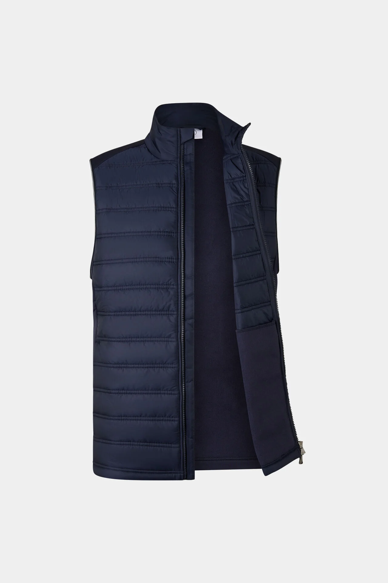 Хибриден елек с премерен прав силует, съчетаващ техническа прецизност с отличителна естетика