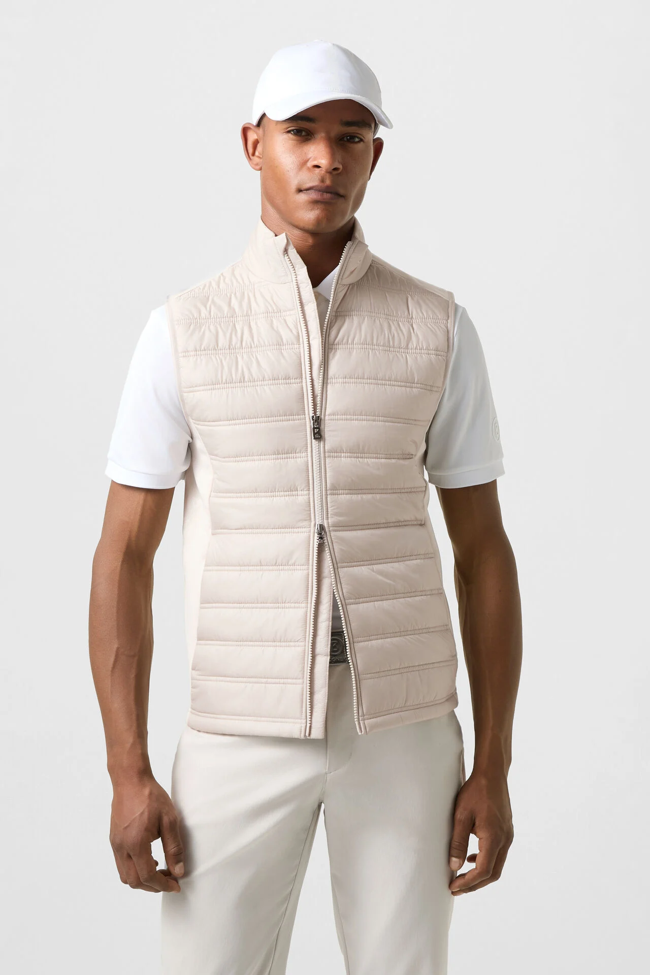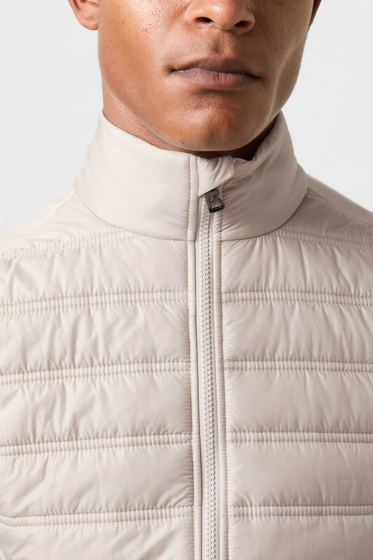 Предната част е изработена от ватиран найлон, осигуряващ комфортна топлина и модерен обем, докато останалите зони са изчистени и гъвкави, позволяващи свобода на движение и адаптивност