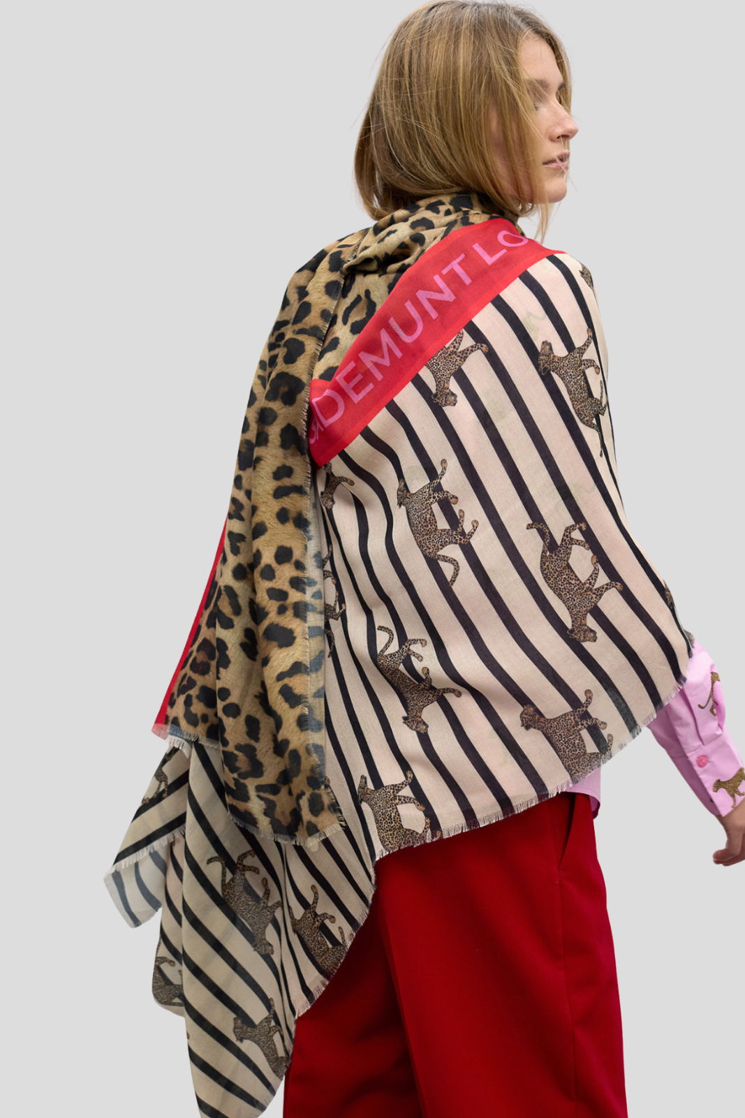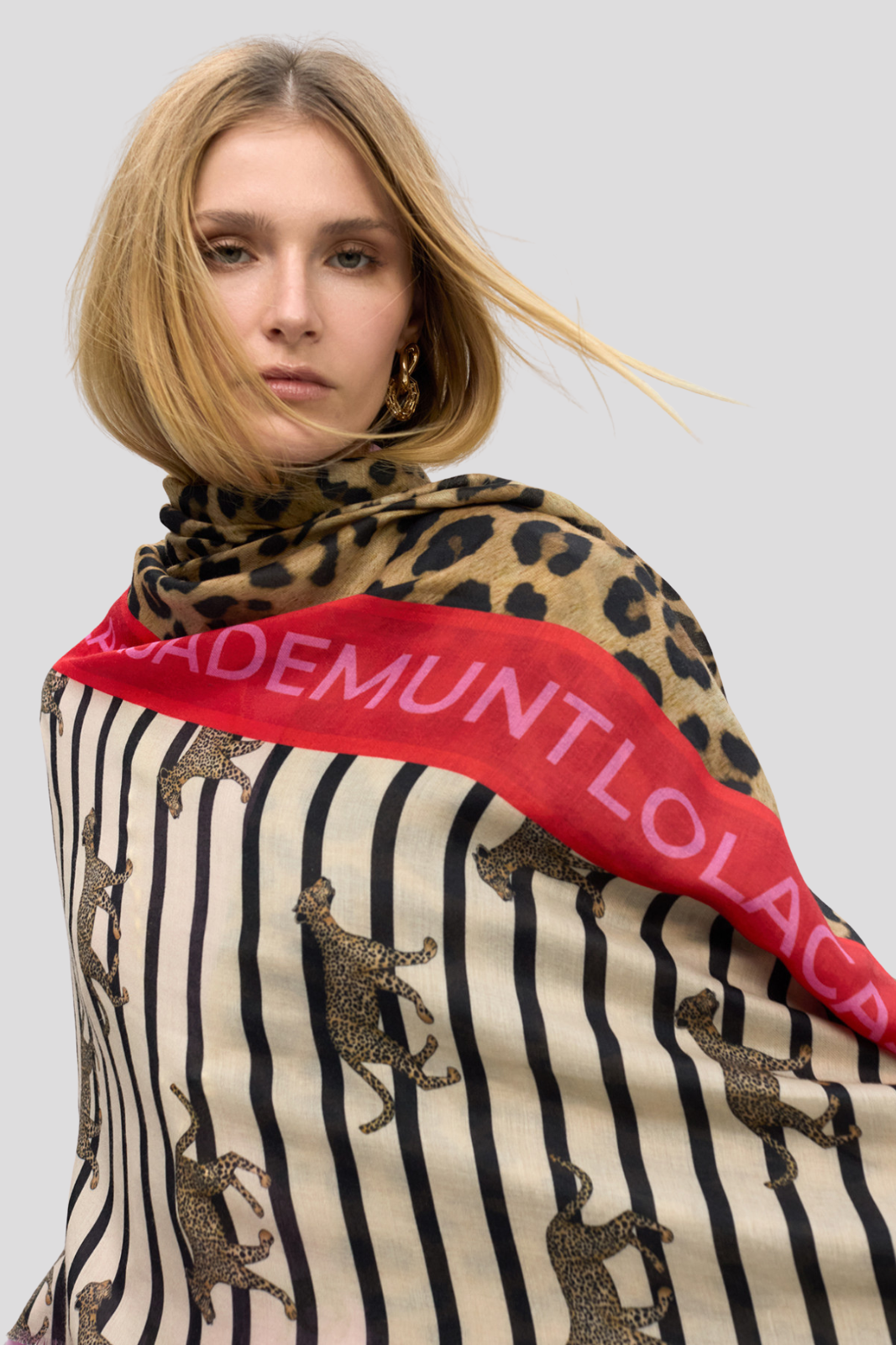 Шал с уникален дизайн, съчетаващ класически райета и ефектен леопардов принт
