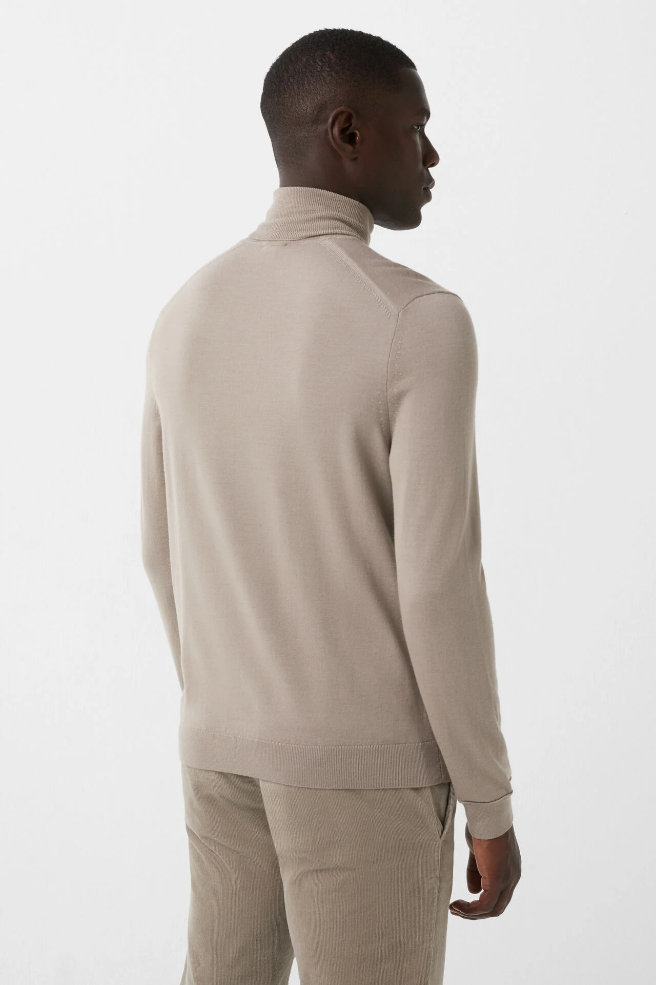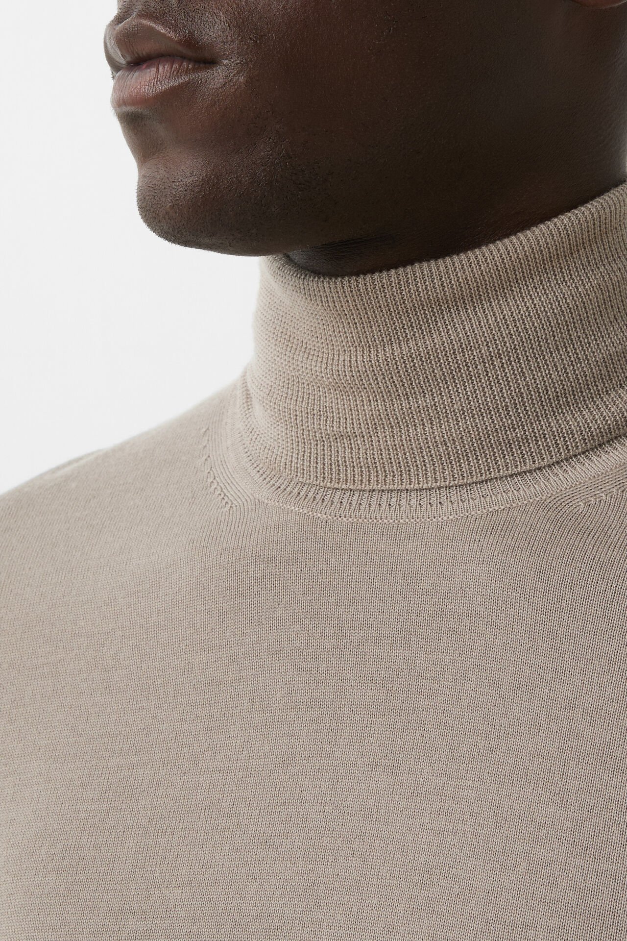 Дългите ръкави завършват с елегантни оребрени маншети, а подгъвът е фино оребрен за изчистен силует