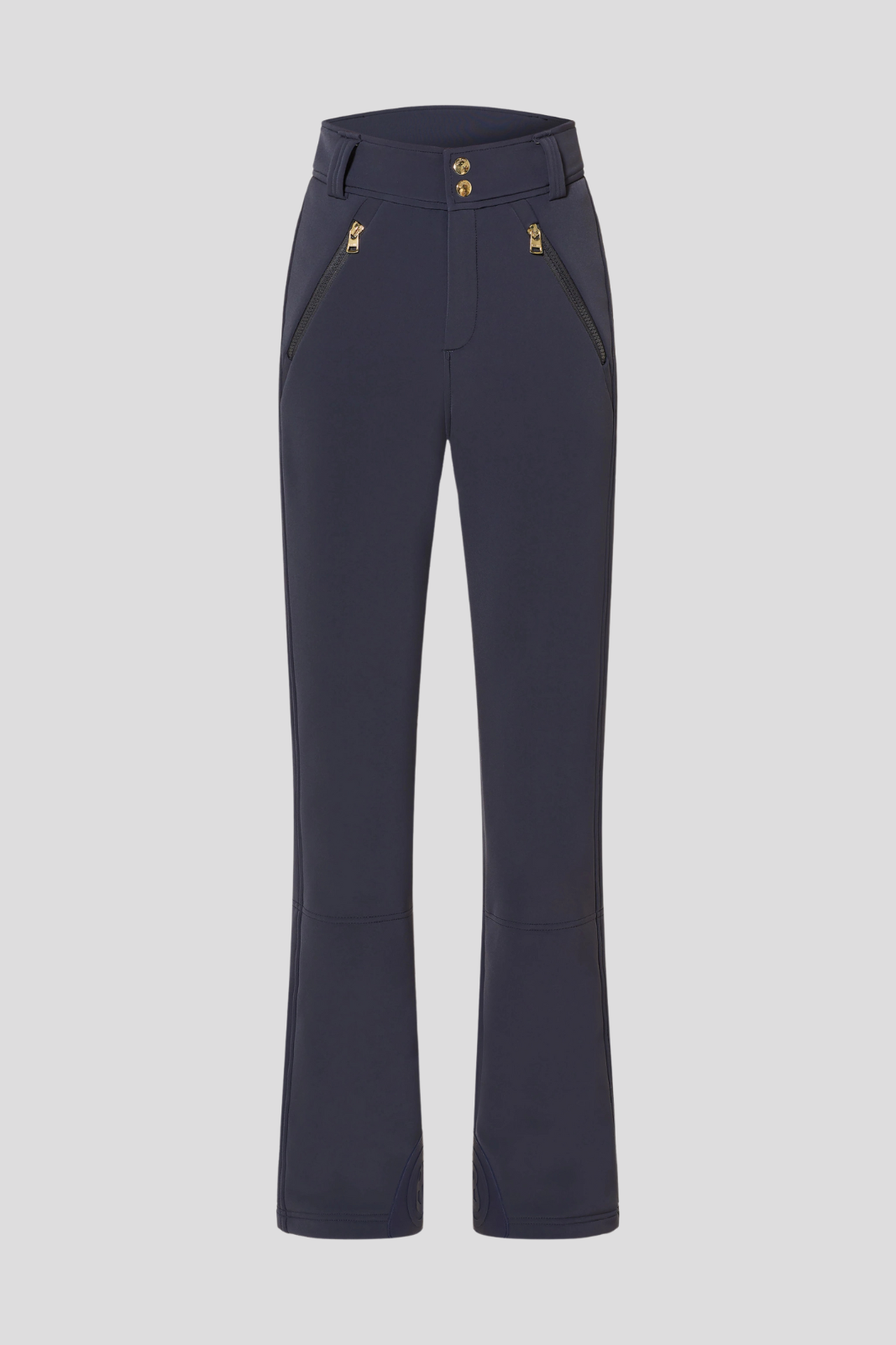 Ски панталони Slim Fit със средна талия и прав крак подчертани от шевове които придават перфектна форма подгъви с B-гумена защита регулируеми ципове отзад и вътрешно фиксирани снегозащитни маншети закопчаване с лого копче тик-так и скрит цип за елегантен и функционален завършек колан с защита за бъбреците и интегрирани гайки за допълнителна стабилност два джоба с цип за сигурно съхранение на лични вещи акценти с логото и релефен хардуер които придават изискан стил водоотблъскващо покритие воден стълб 200 мм и висока дишаемост 7000 г/м²/24 ч осигуряващи комфорт при активни зимни условия