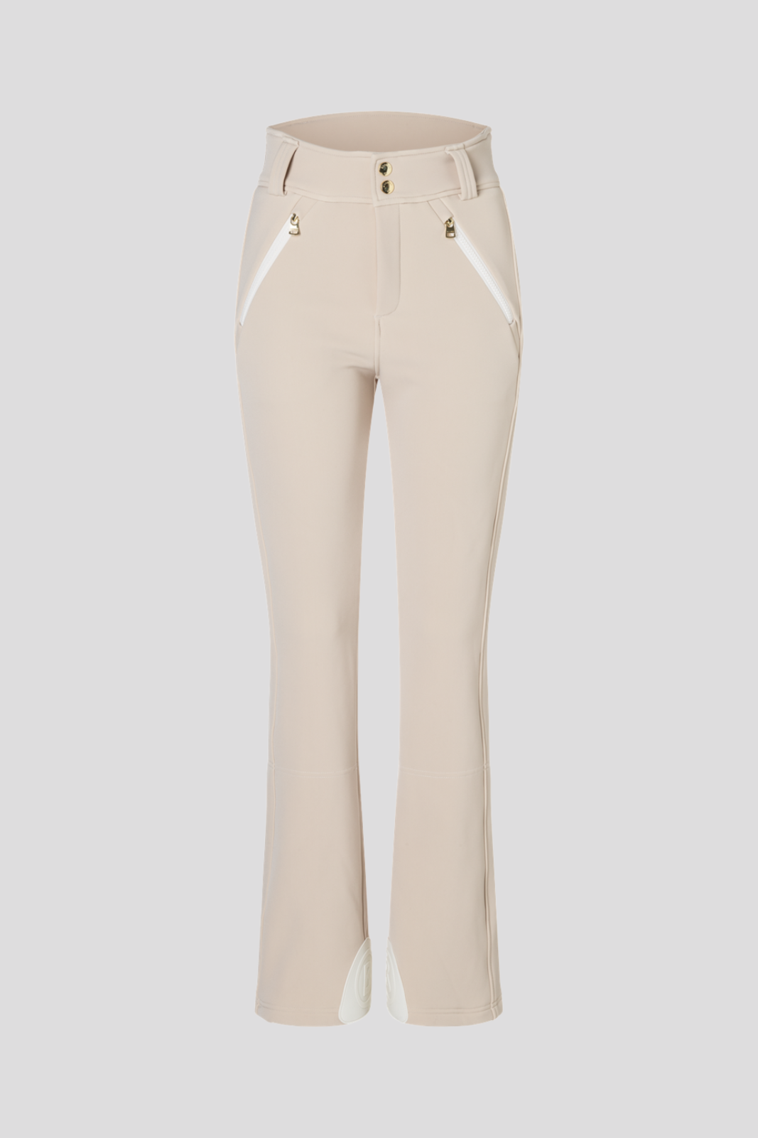 Ски панталони Slim Fit със средна талия и прав крак подчертани от шевове които придават перфектна форма подгъви с B-гумена защита регулируеми ципове отзад и вътрешно фиксирани снегозащитни маншети закопчаване с лого копче тик-так и скрит цип за елегантен и функционален завършек колан с защита за бъбреците и интегрирани гайки за допълнителна стабилност два джоба с цип за сигурно съхранение на лични вещи акценти с логото и релефен хардуер които придават изискан стил водоотблъскващо покритие воден стълб 200 мм и висока дишаемост 7000 г/м²/24 ч осигуряващи комфорт при активни зимни условия
