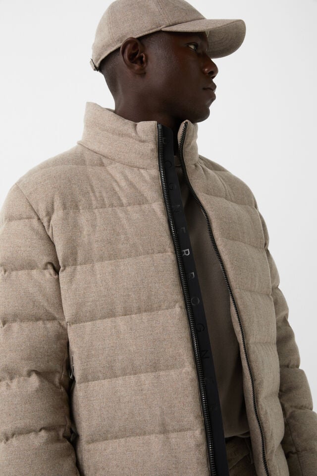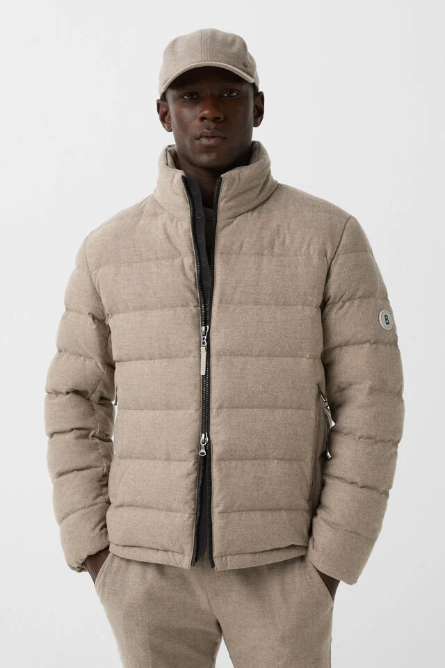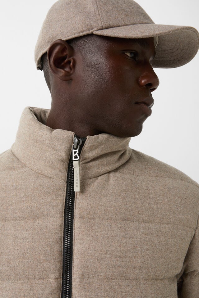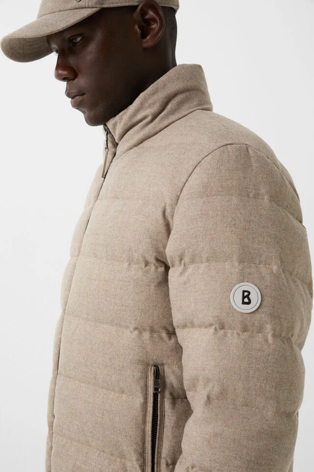 Закопчаването е решено с двупосочен цип и B-висулка, допълнено от характерния панел с емблемата на BOGNER