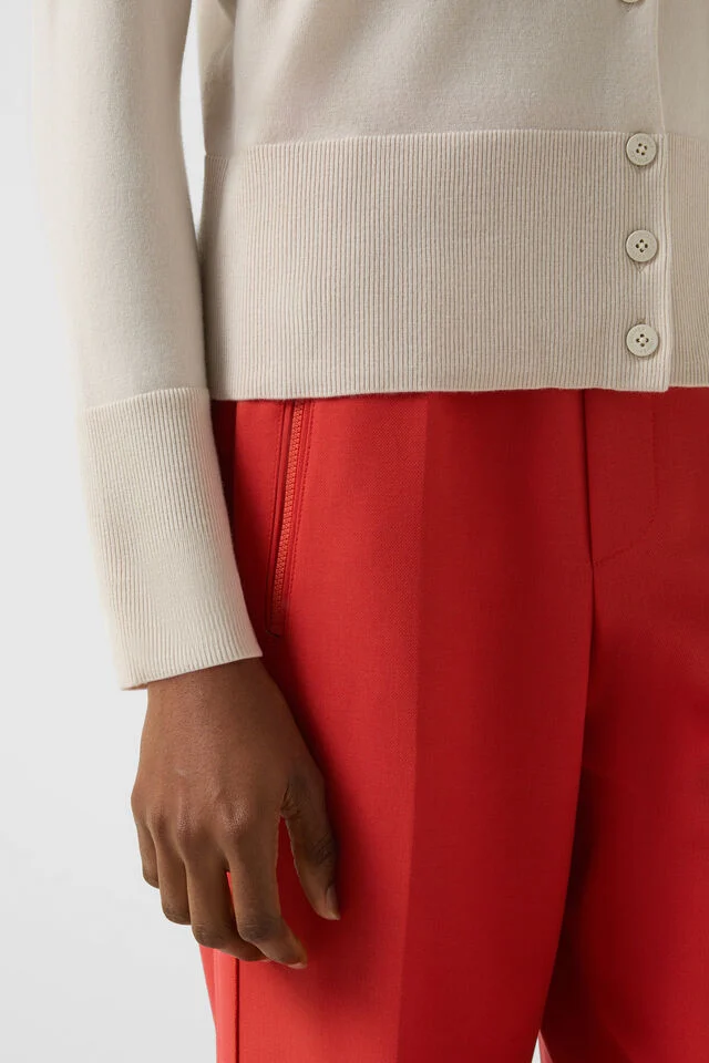 Плетена жилетка в прав силует, което съчетава комфорт и класически стил