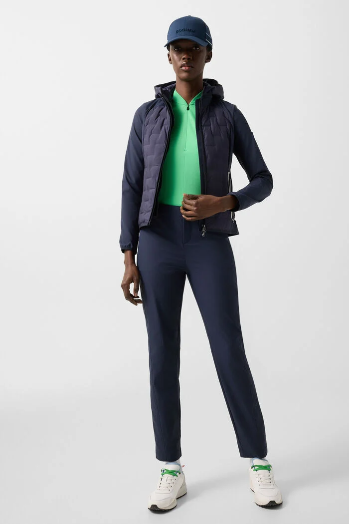 Подложеният двупосочен цип с B-етикет подчертава прецизната изработка, а двата странични джоба с цип и светлоотразителна лента добавят функционален акцент