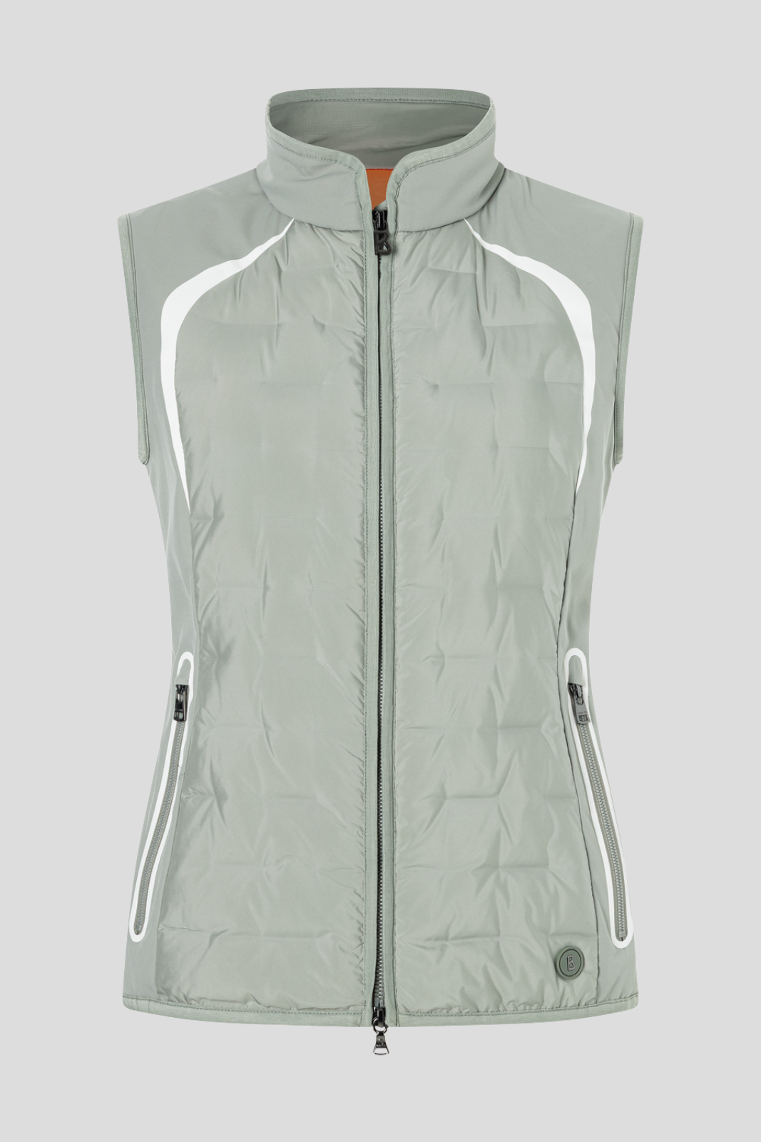 Дългите ръкави завършват с маншети с копчета, а фината линия на закопчаване с емблематичните копчета BOGNER подчертава изисканата й характерност