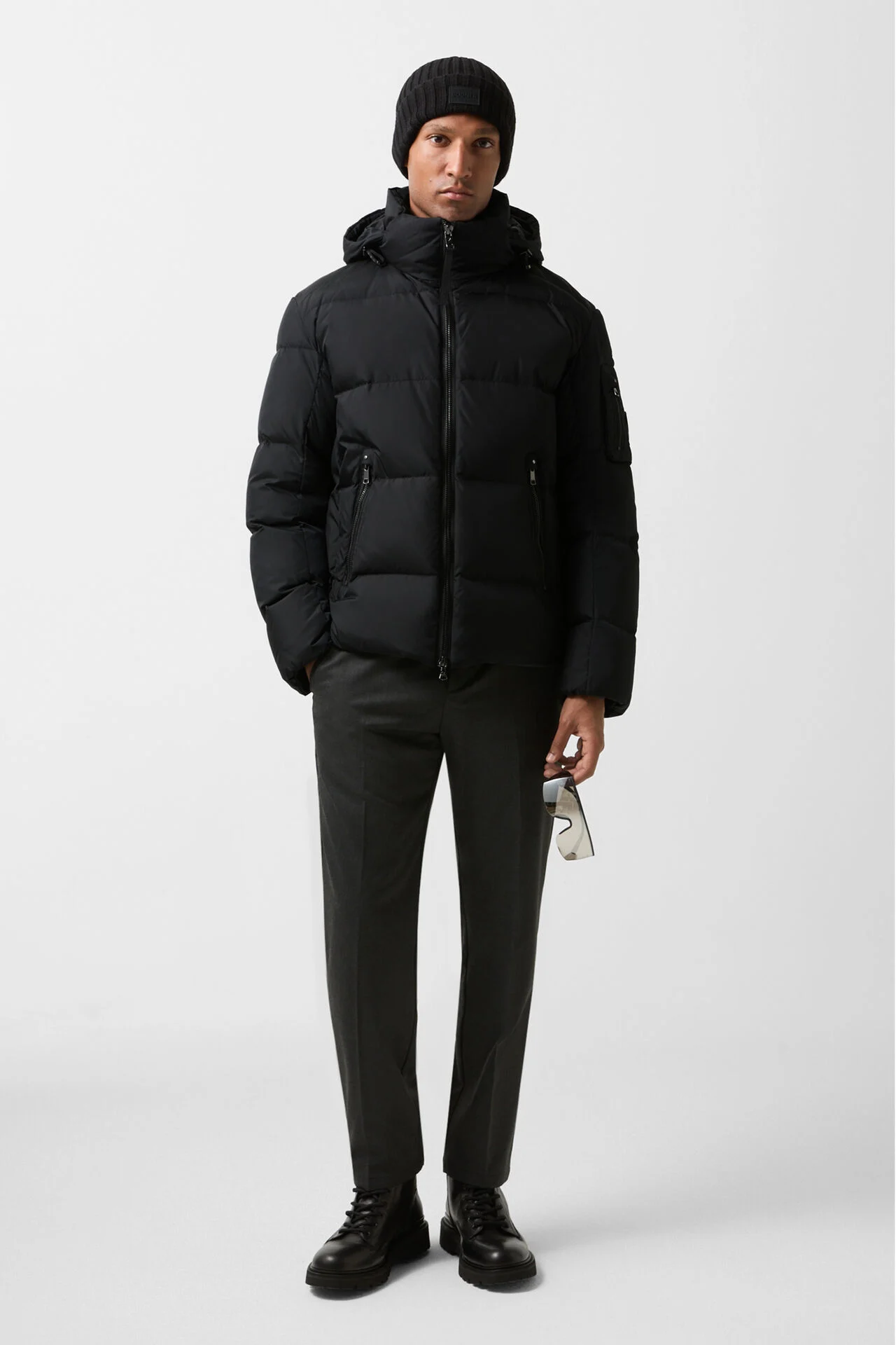 Ръкавите с еластични маншети гарантират удобно прилягане, а закопчаването с подложен двупосочен цип, завършващо с висулка с лого, подчертава луксозния характер