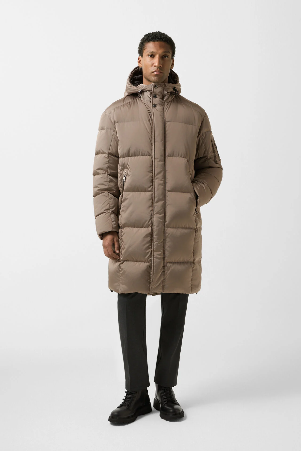 Ръкавите с еластични маншети гарантират удобно прилягане, а закопчаването с подложен двупосочен цип, завършващо с висулка с лого, подчертава луксозния характер