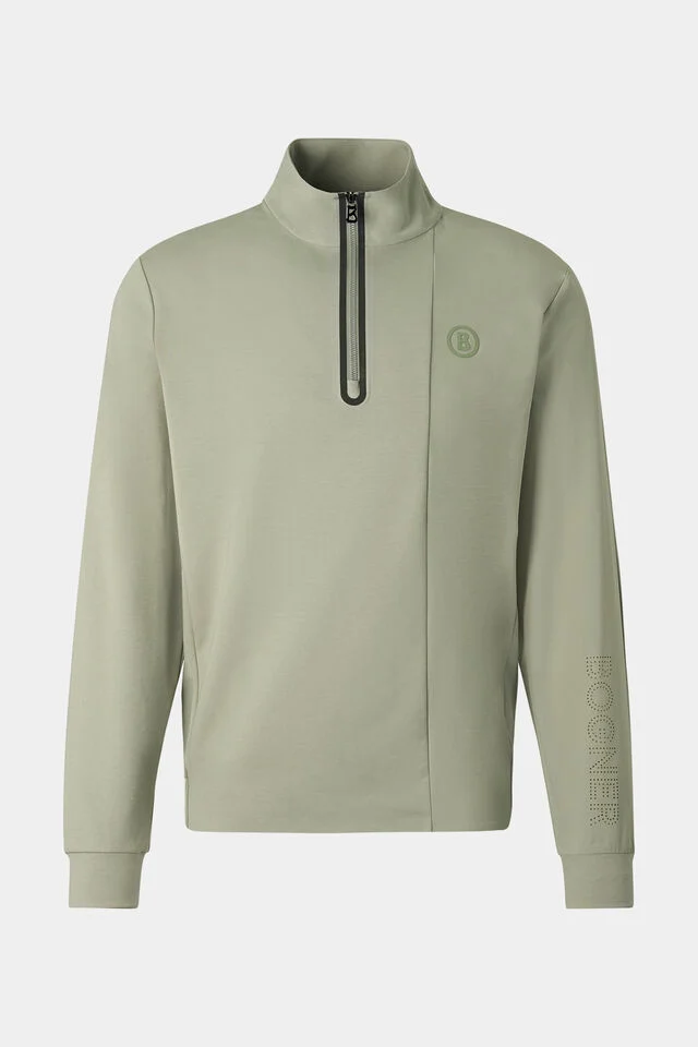 Суитшърт в прав силует и яка с еластична обшивка, закопчава се с двупосочен цип с висулка с логото B