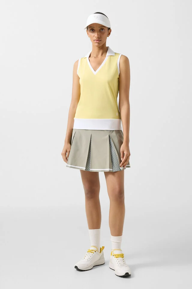 Тениска с поло яка и класически силует, създадена в естетиката на изчистения лукс