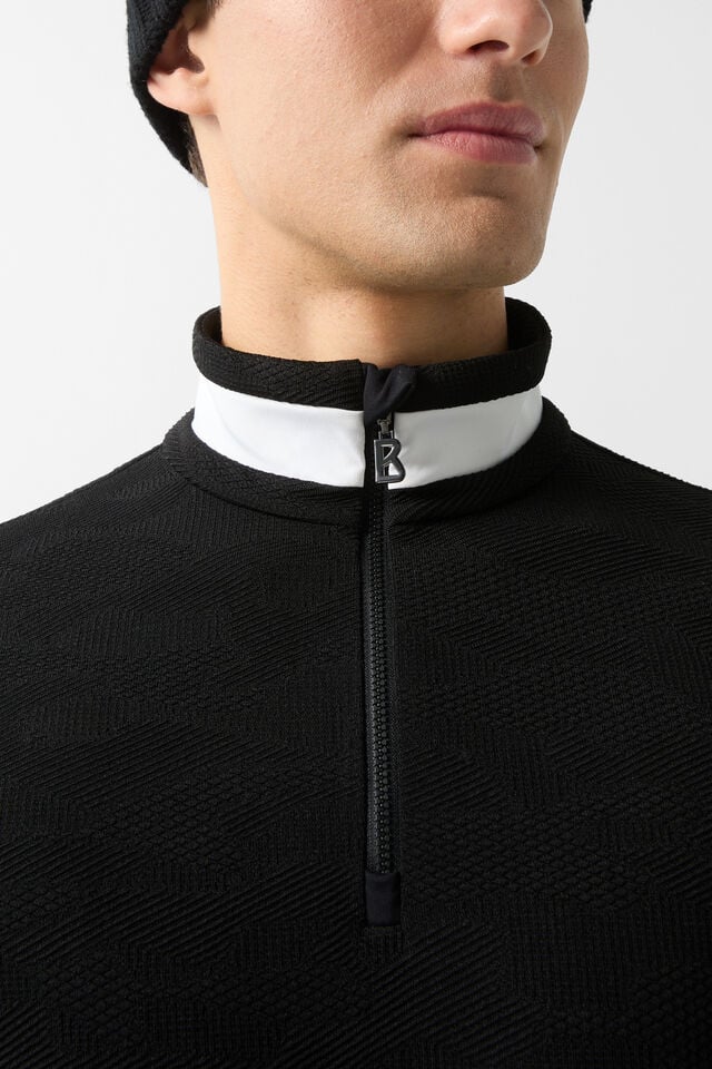 Дългите ръкави с еластични маншети осигуряват удобство, а B-ципът на яката придава функционален акцент
