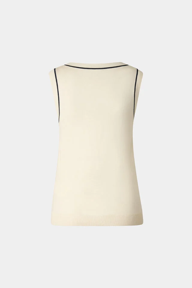 Моделът е с V-образно деколте с оребрен кант и оребрена поло яка, които придават изчистена и премиум визия