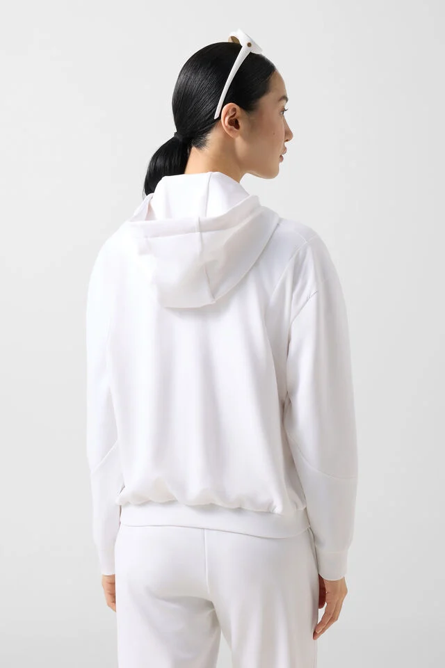 Суитшърт с качулка в класически силует, изработен с прецизно позиционирани тонални секции с двупосочна еластичност за изключителен комфорт и свобода на движение
