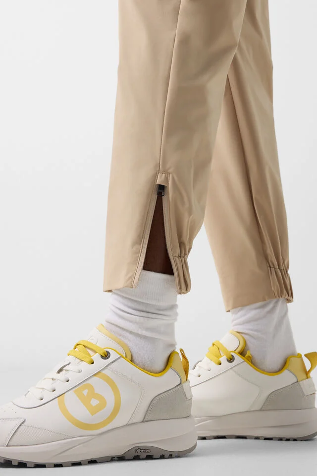 Панталони в прав силует с леко стеснени крачоли и частично еластични подгъви с ципове