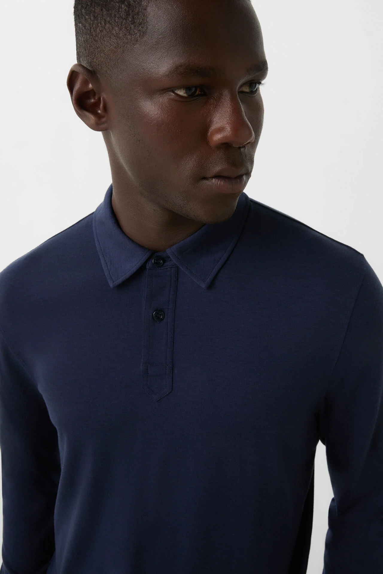 Моделът разполага с поло яка и дълги ръкави, завършващи с двойно зашити маншети за издръжливост и елегантен вид