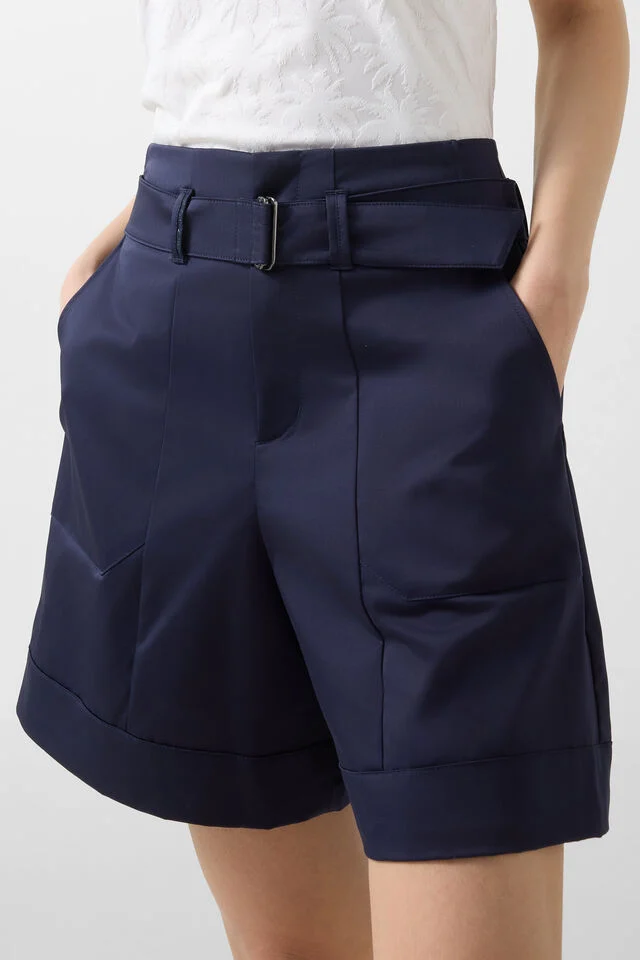 Висока талия с колан, завършващ с двоен D-образен детайл, два функционални джоба с пришити детайли