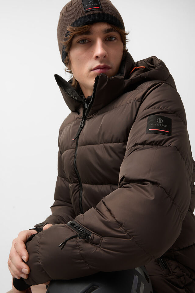 Текстилната нашивка с лого на ръкава подчертава детайла, течащата подплата и затоплящата подплата от технологични влакна осигуряват комфорт и топлина, а подгъвът с връзки за стягане и стопер завършва прецизно