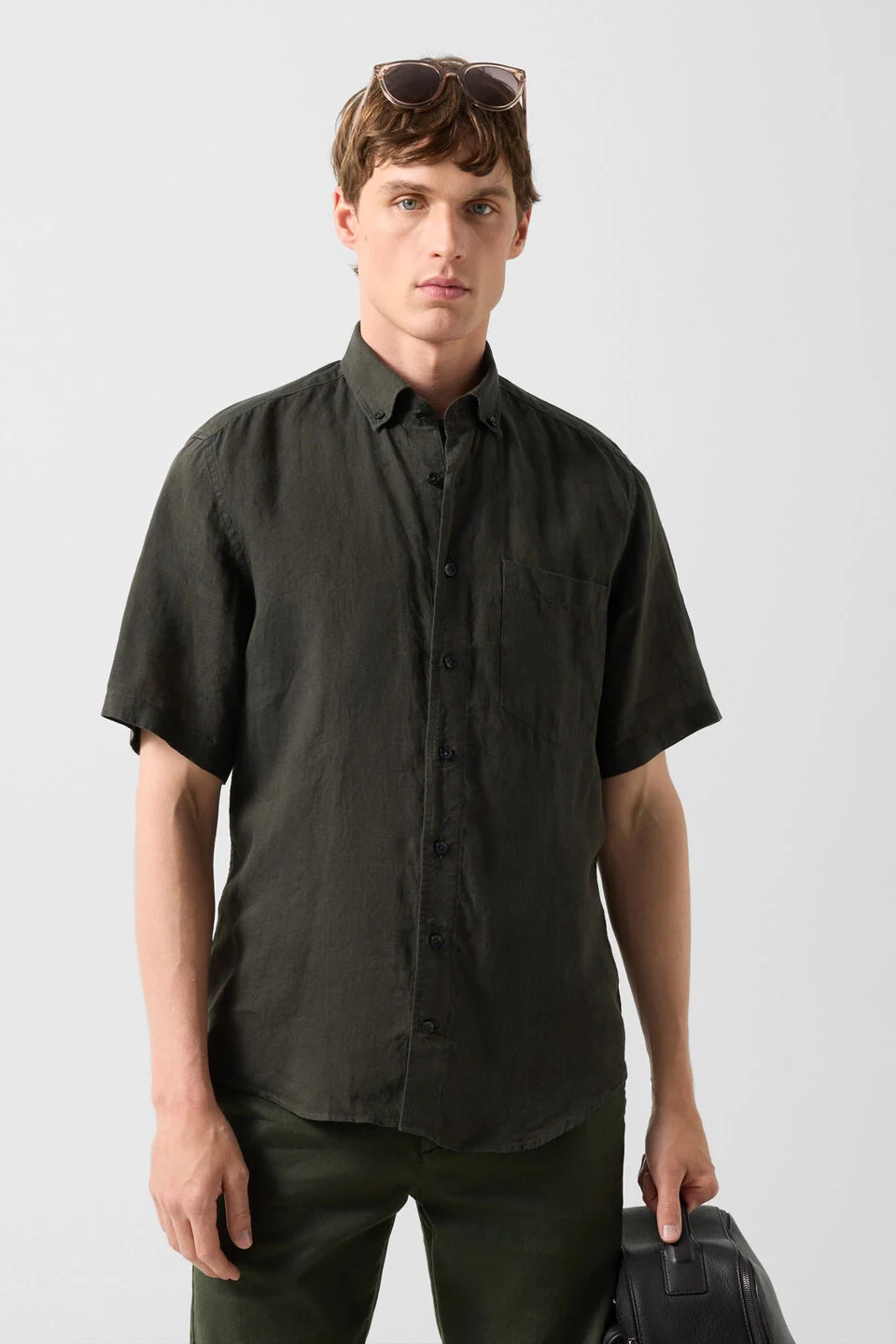 Ленена риза с къс ръкав в Prime Fit в класически силует