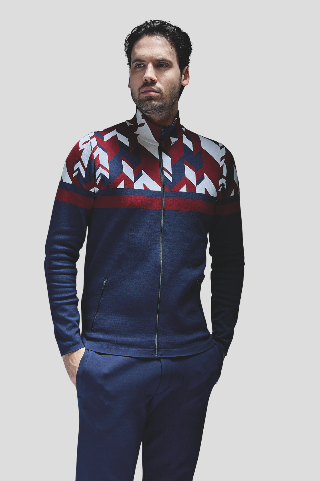 Технологичните иновации на плата са подчертани чрез графичното оформление на изключително изработения жакард
