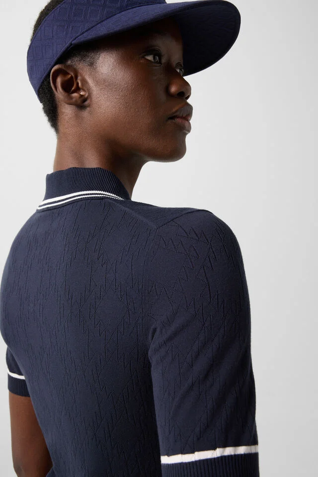 Разполага с оребрена поло яка и маншети, къса закопчалка с копчета BOGNER и раирани детайли на яката и маншетите